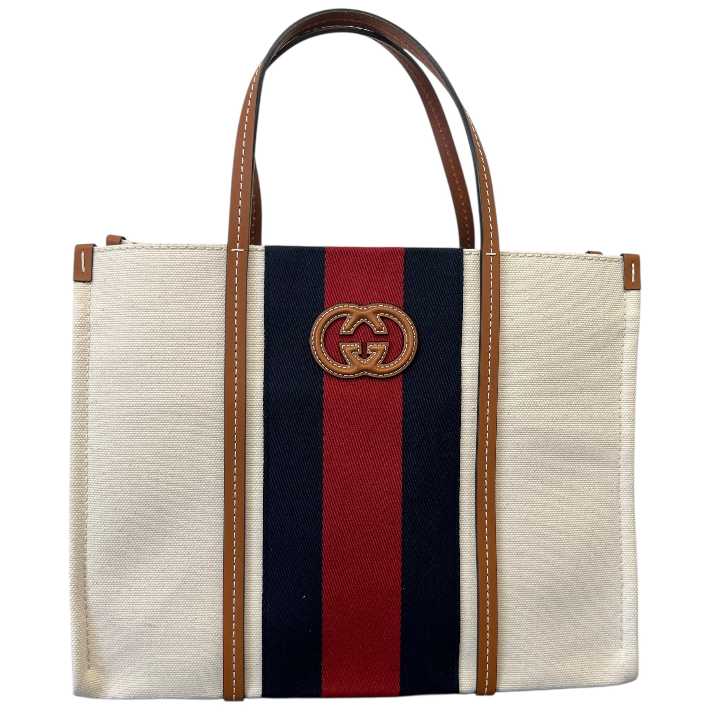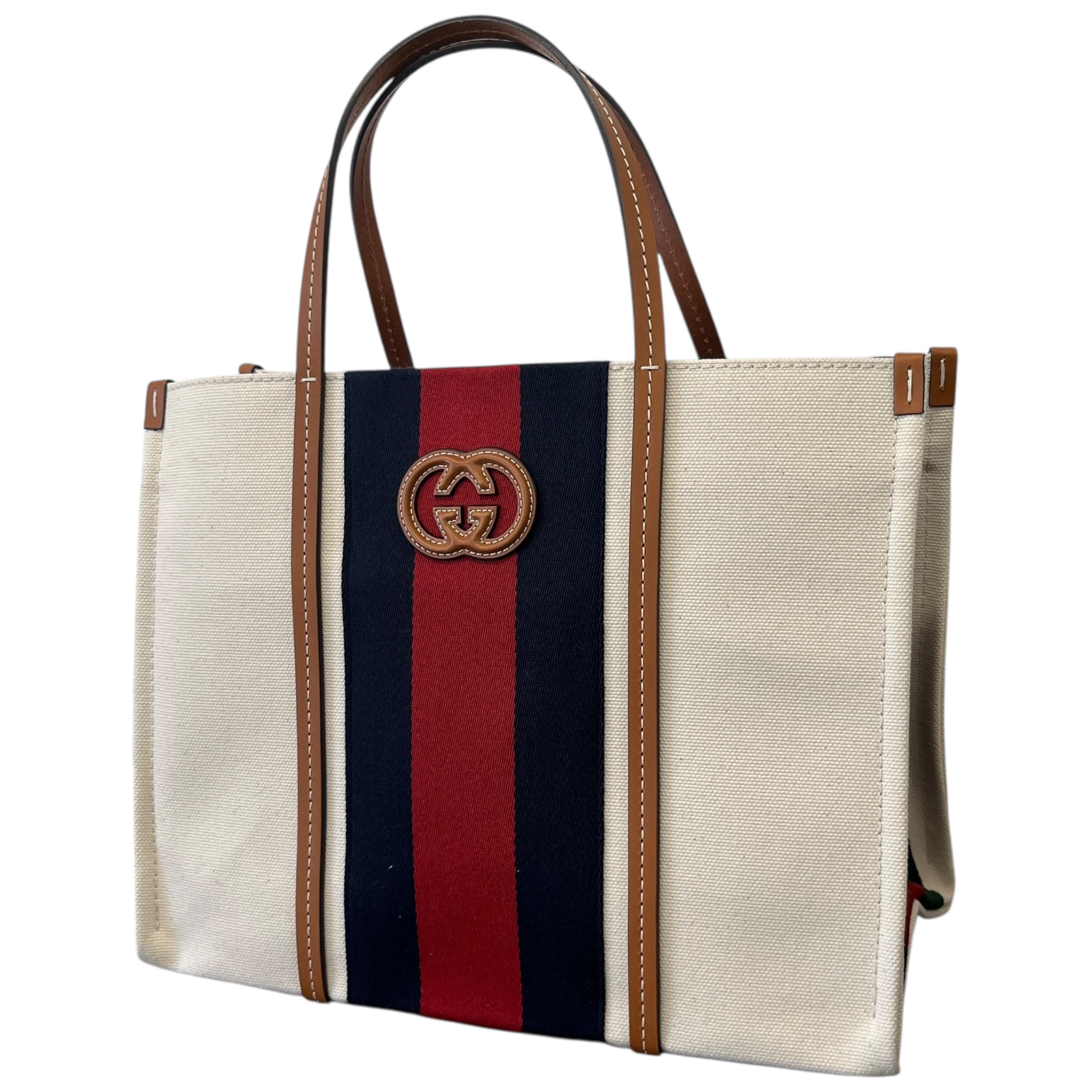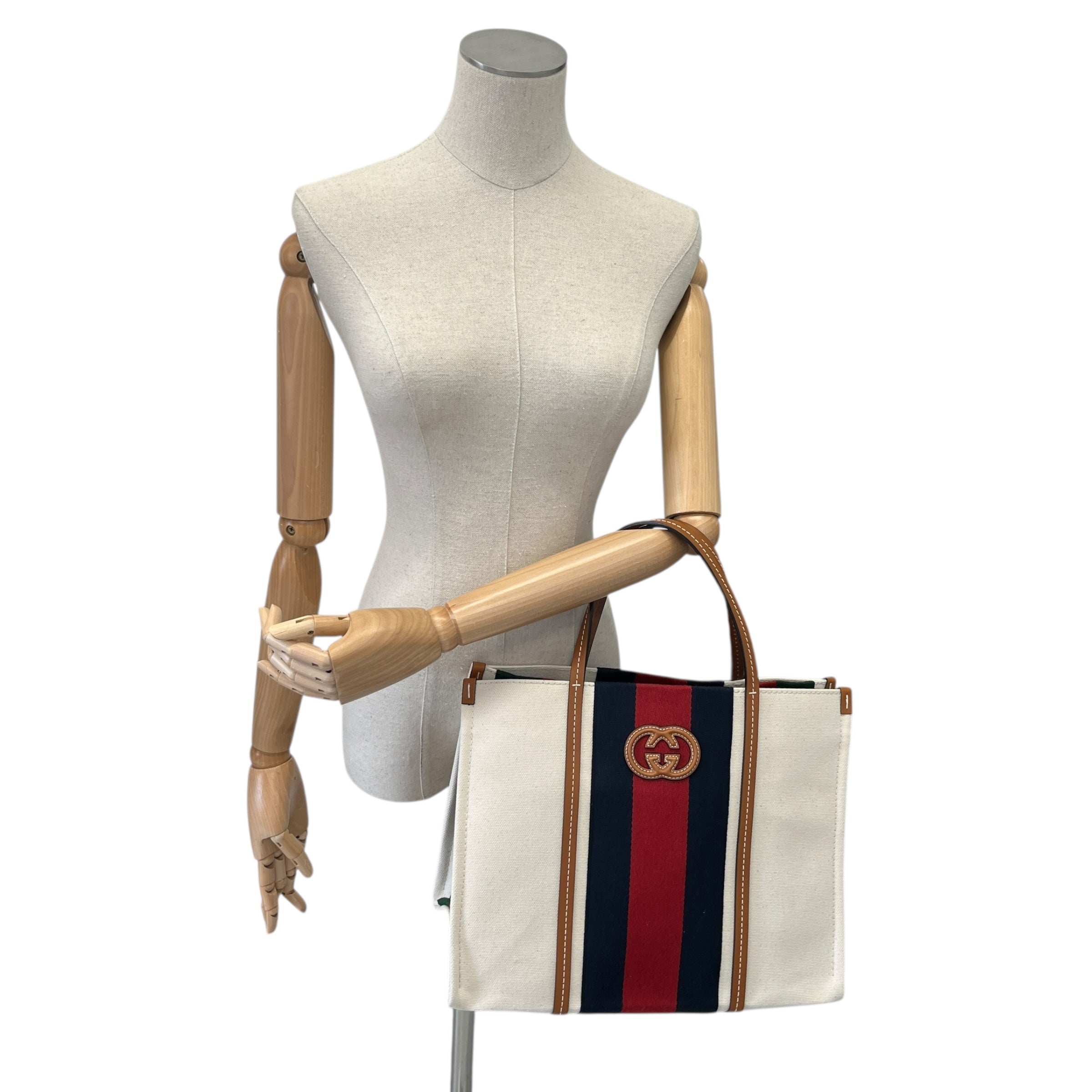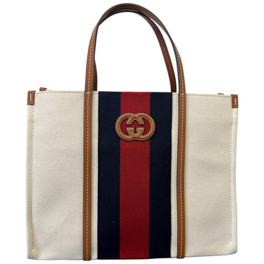 Women's Interlocking G Web Canvas Tote Bag Beige