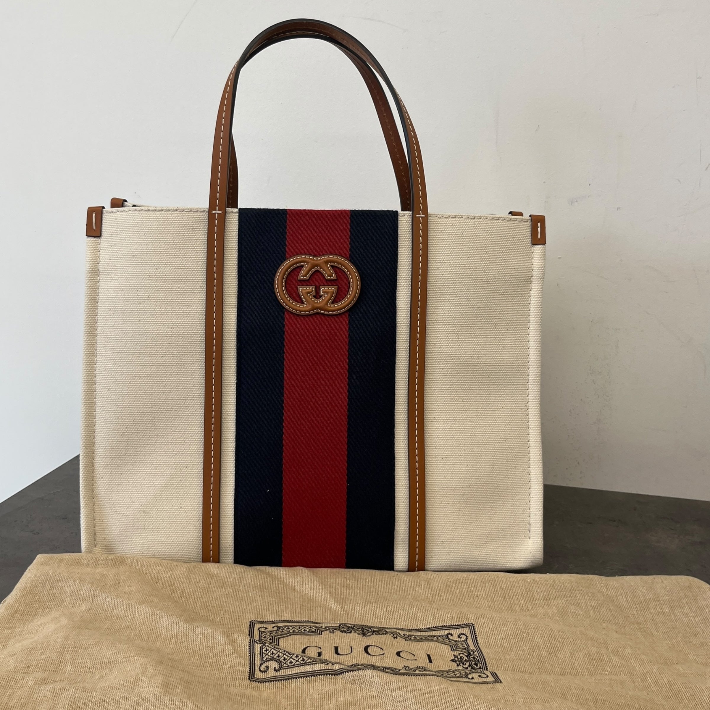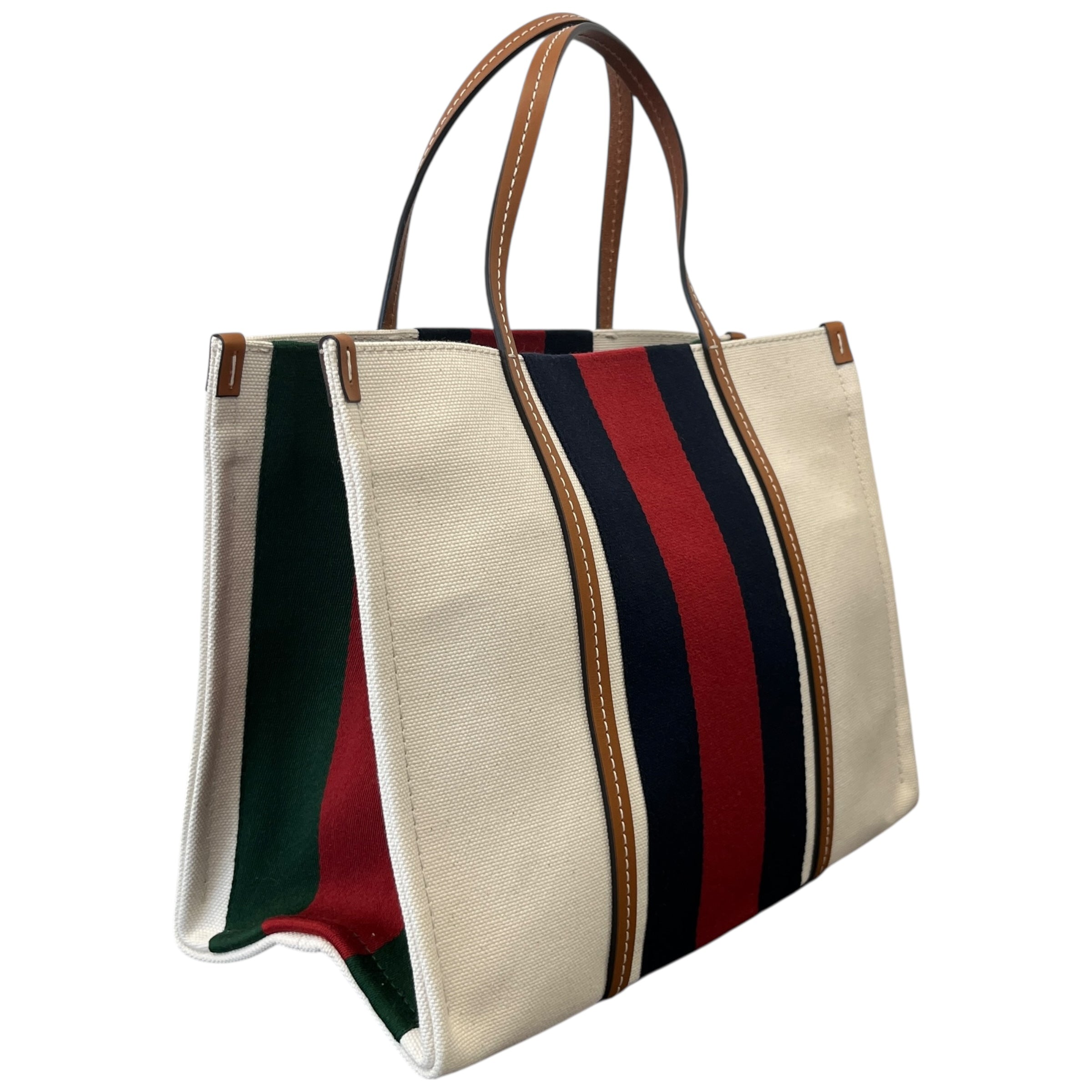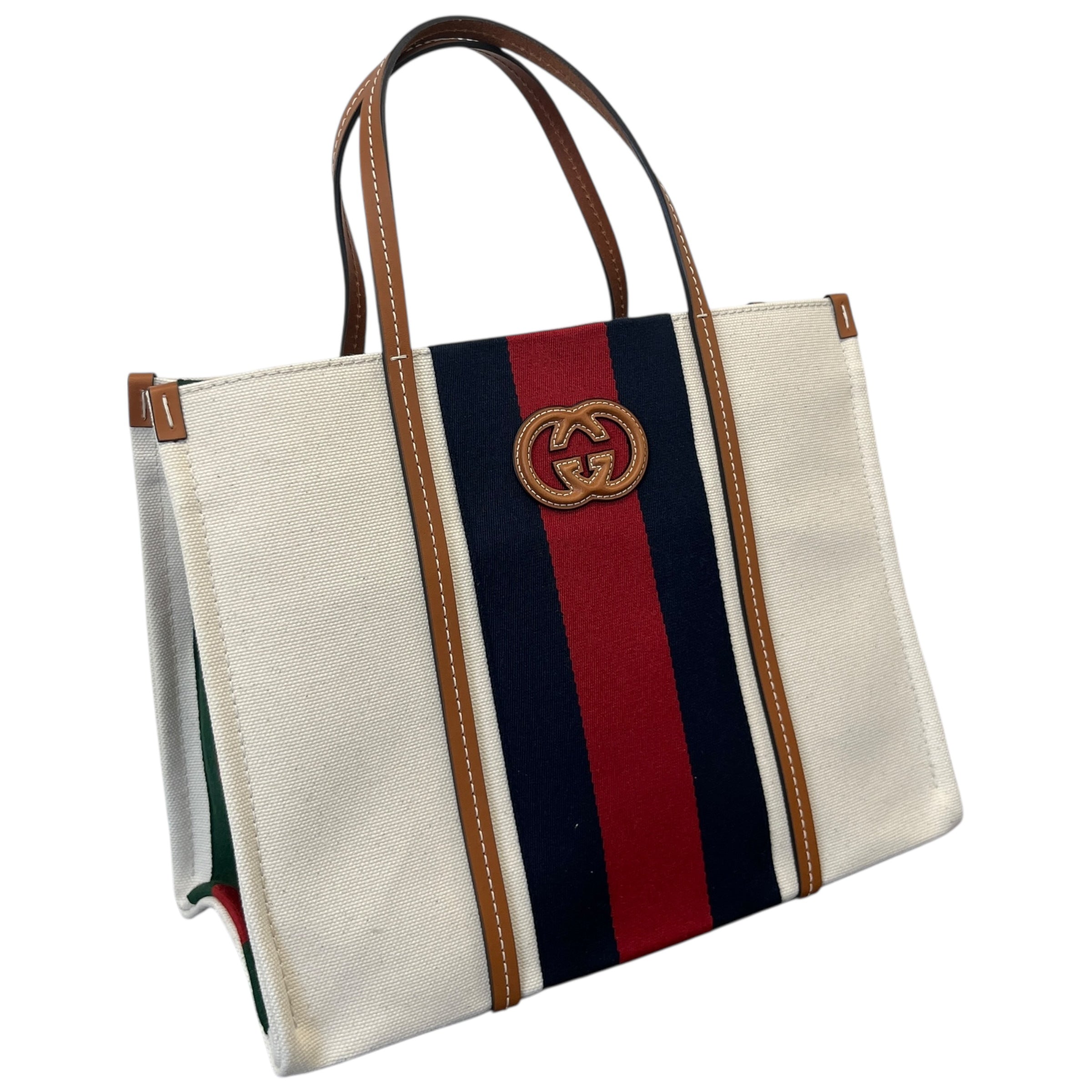 Women's Interlocking G Web Canvas Tote Bag Beige