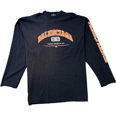 Men's Distressed Logo Print Long Sleeve T-Shirt Black Size S