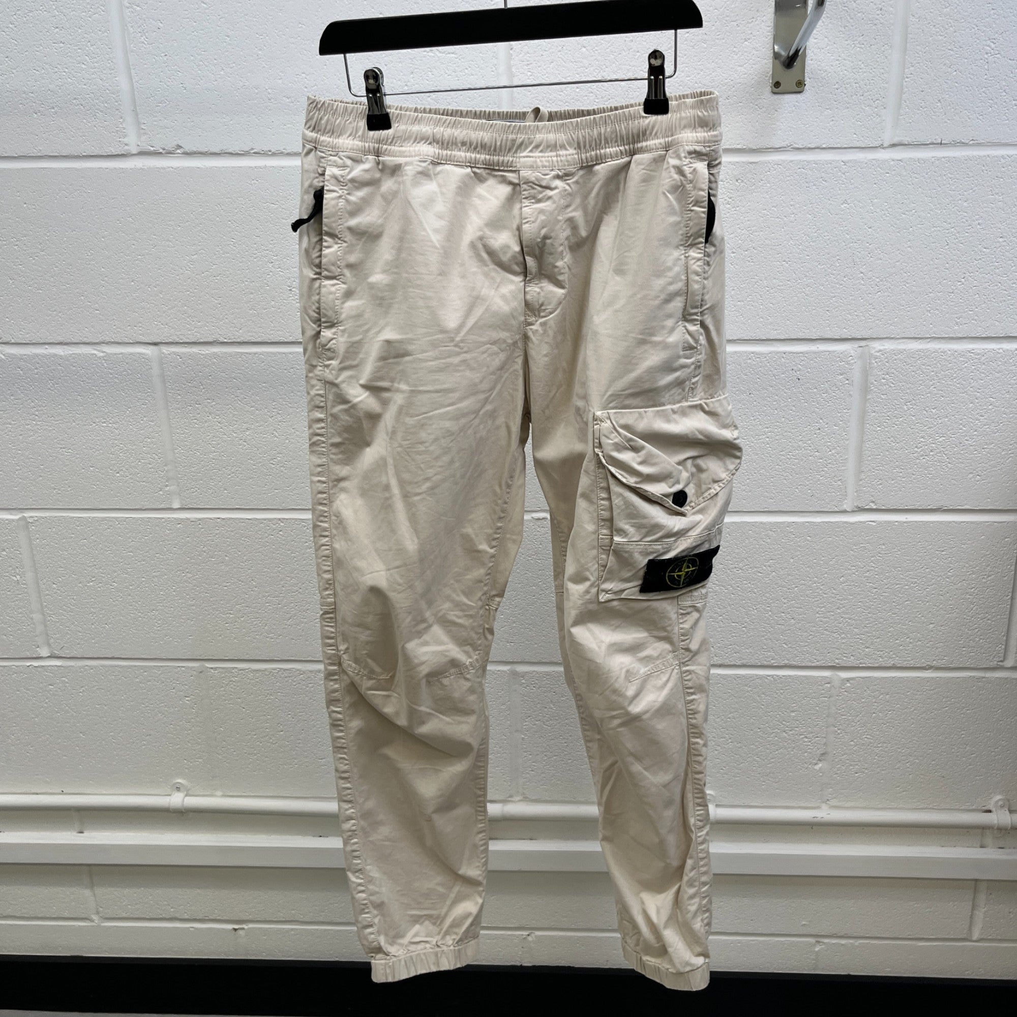 Men's Applique Logo Cargos Beige Size Waist 30"
