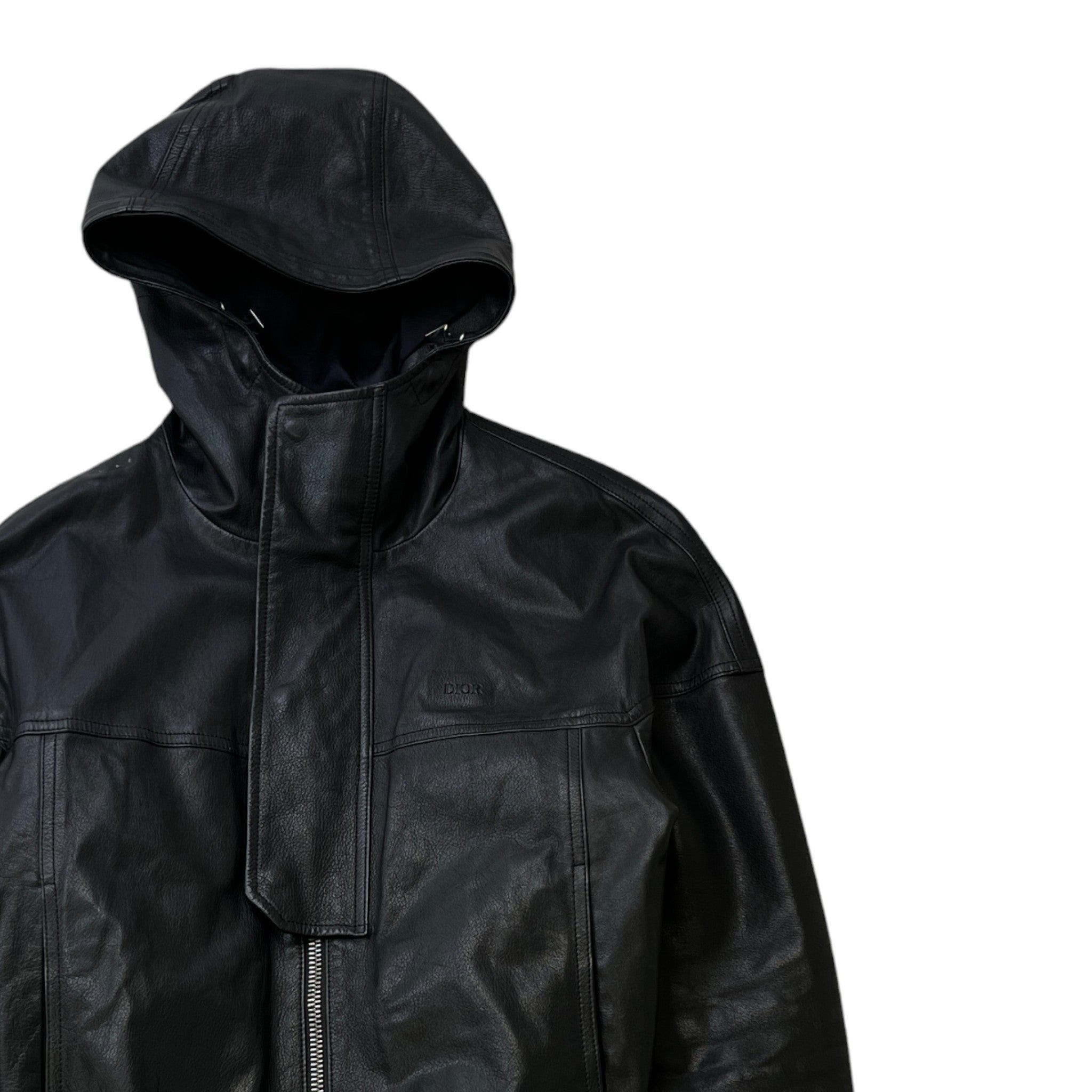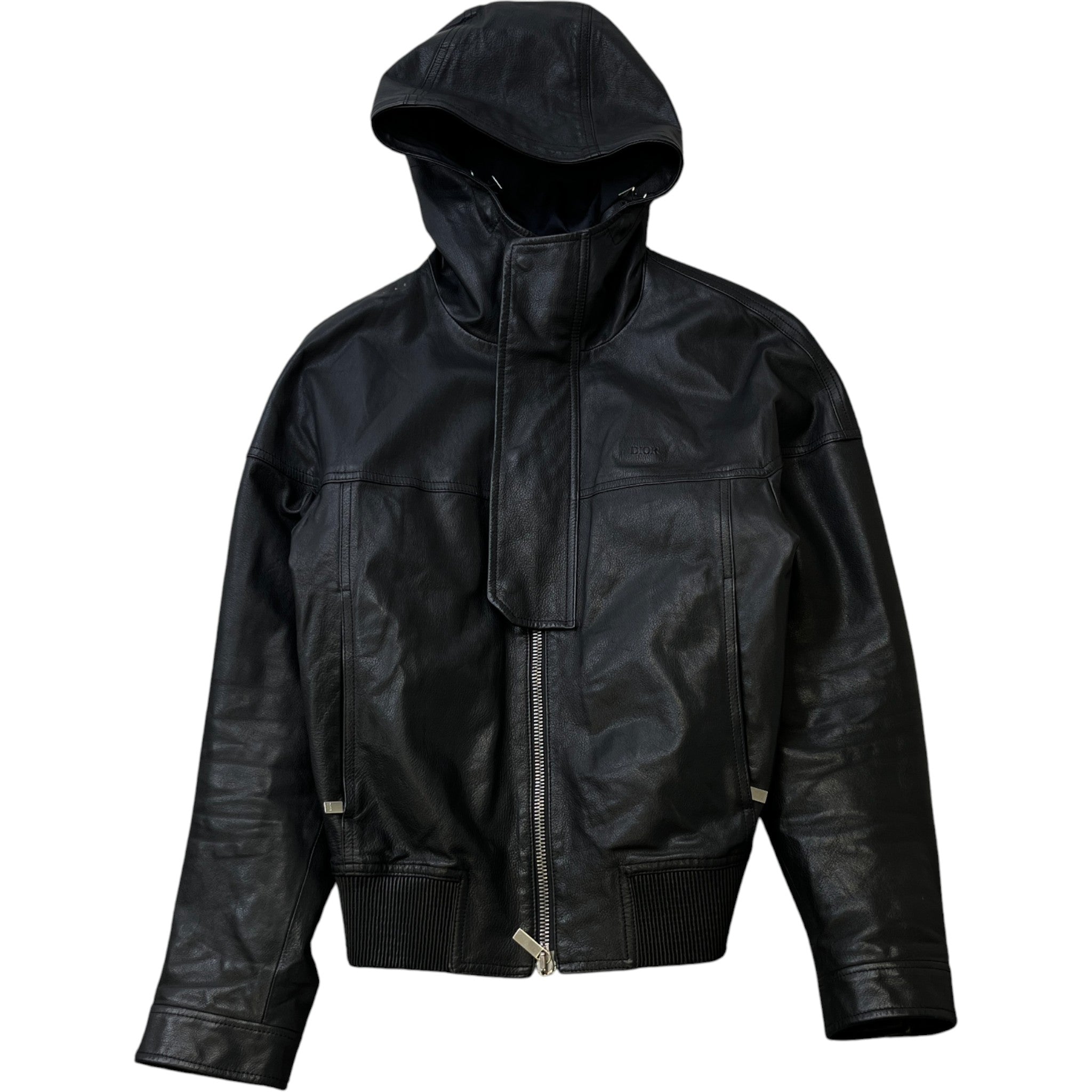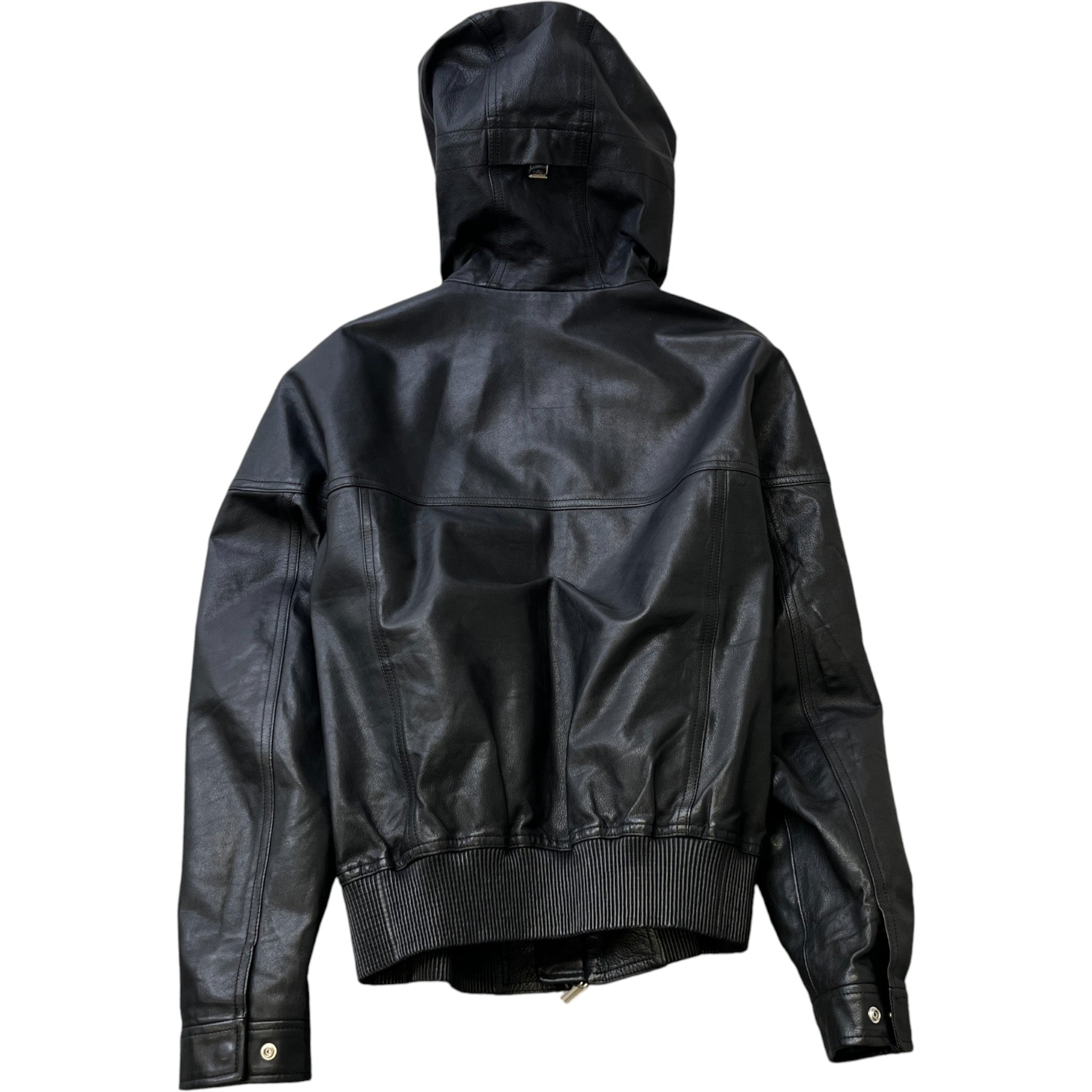 Men's Leather Homme Hooded Logo Jacket Black Size IT 44 / XS