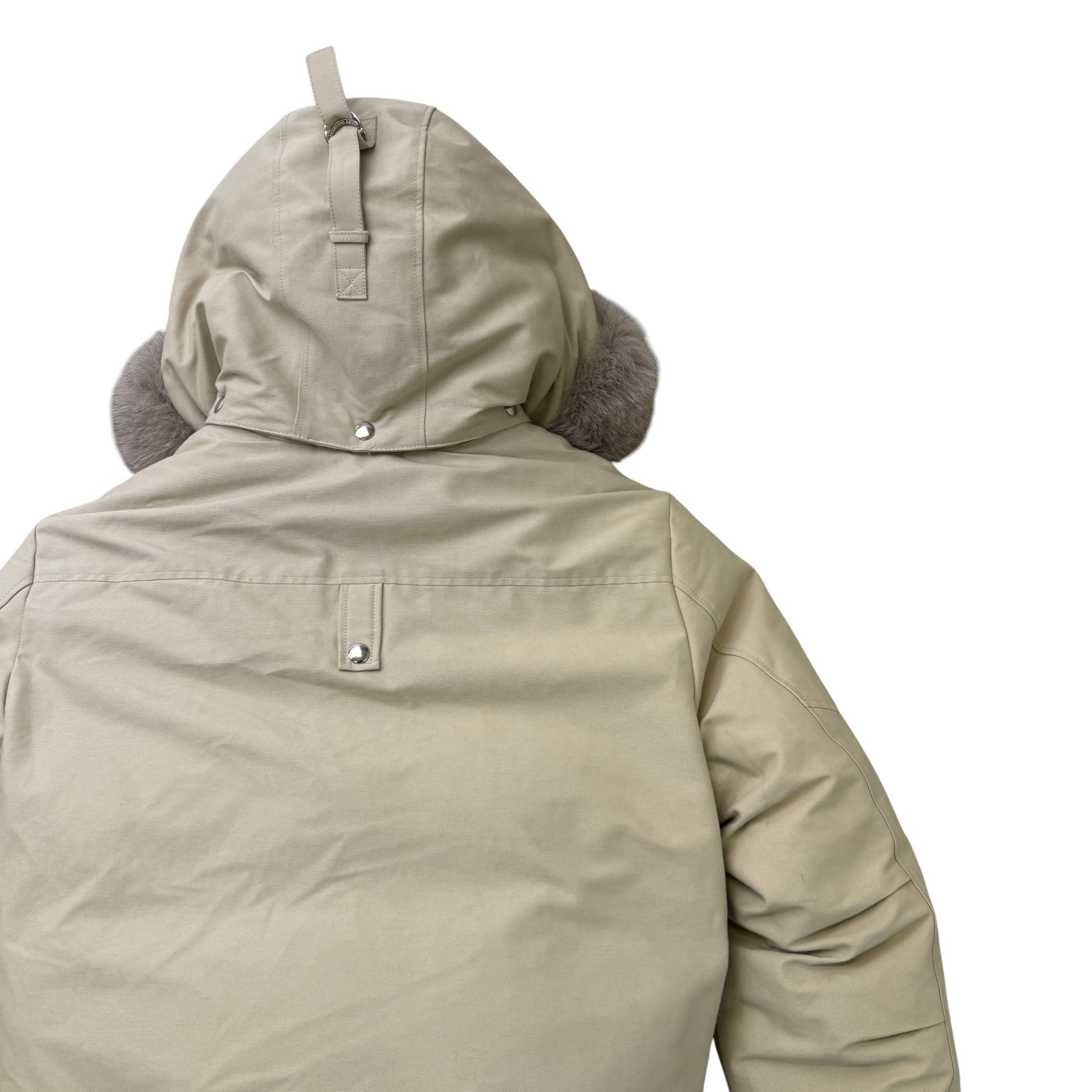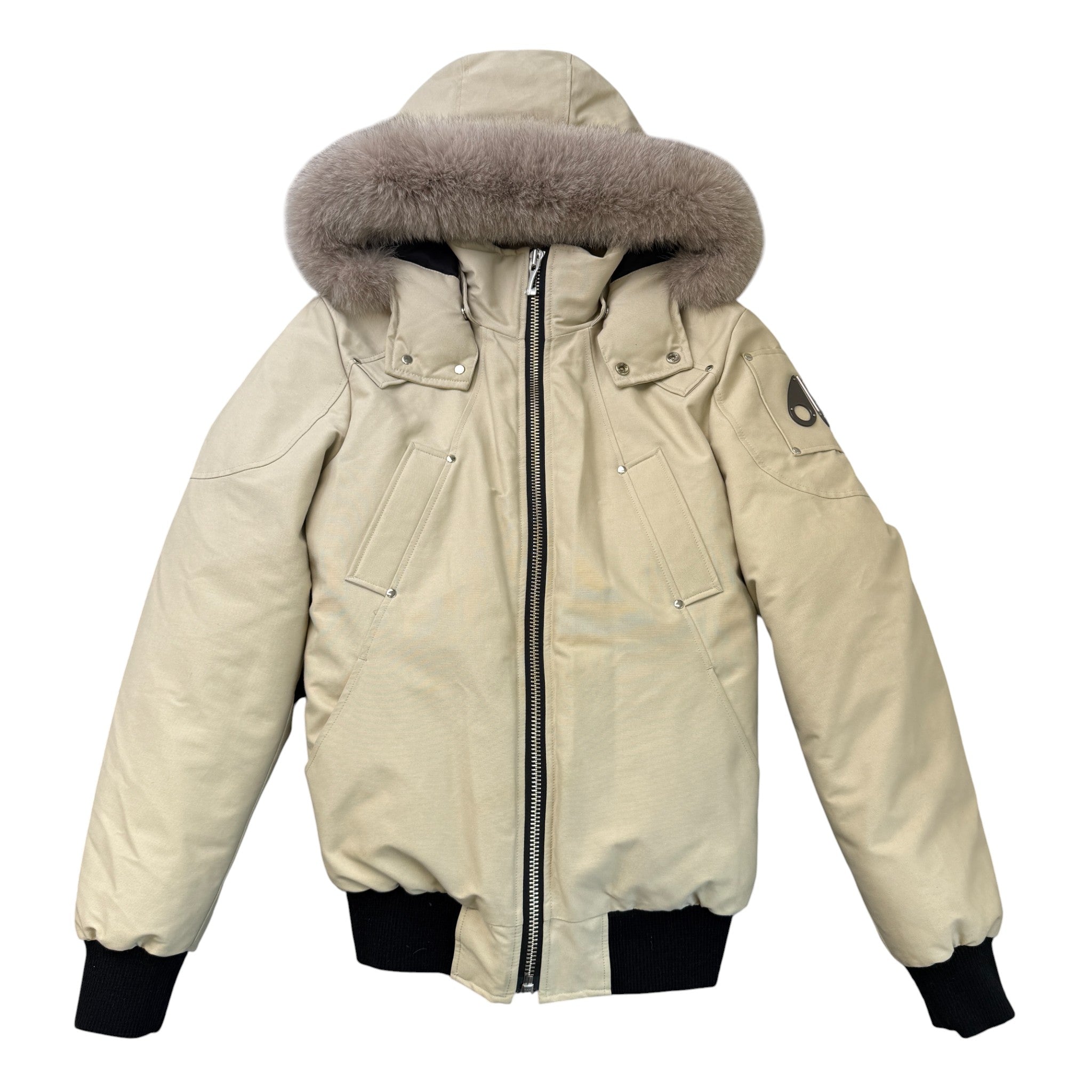 Men's Ballistic Shearling Trim Bomber Down Jacket Beige Size L
