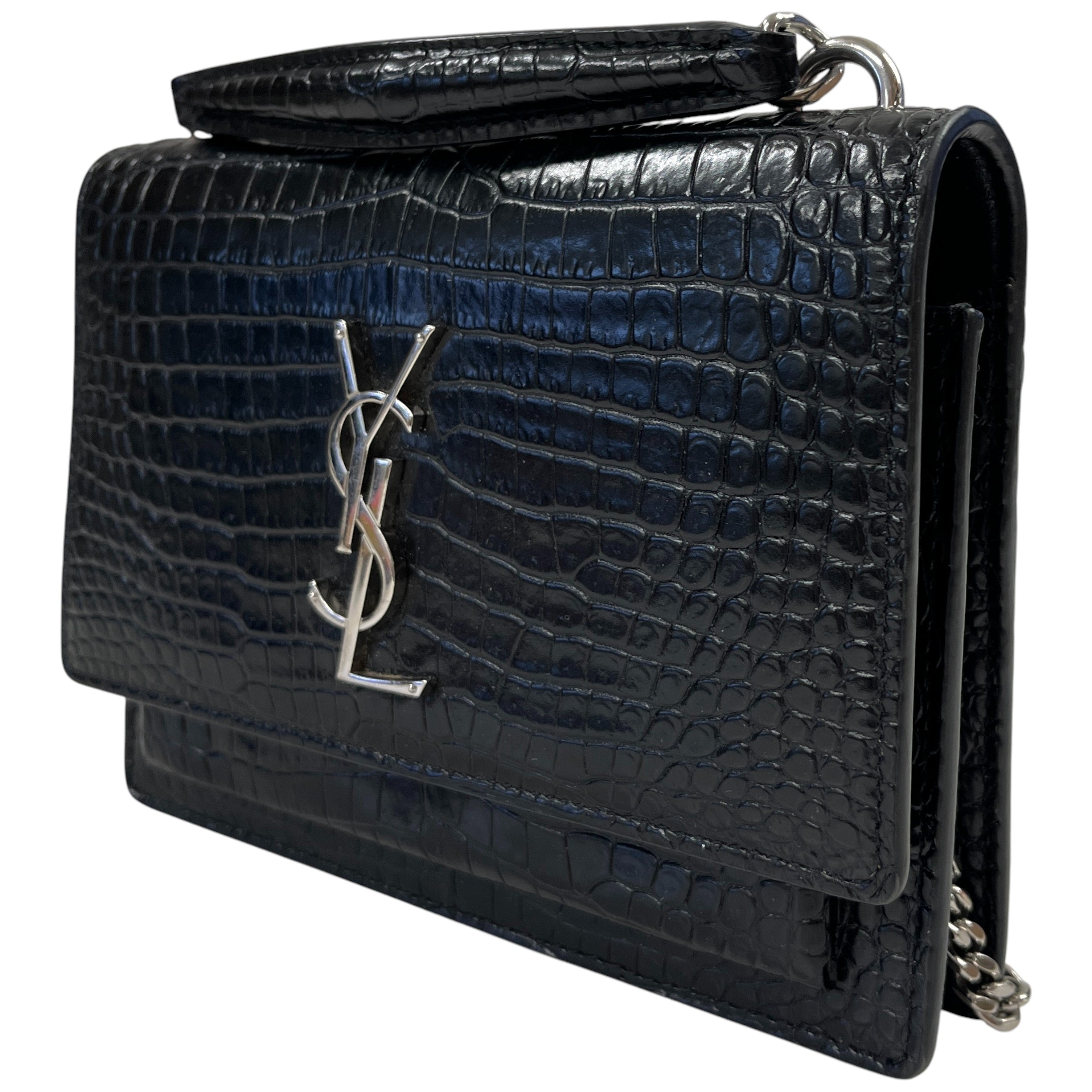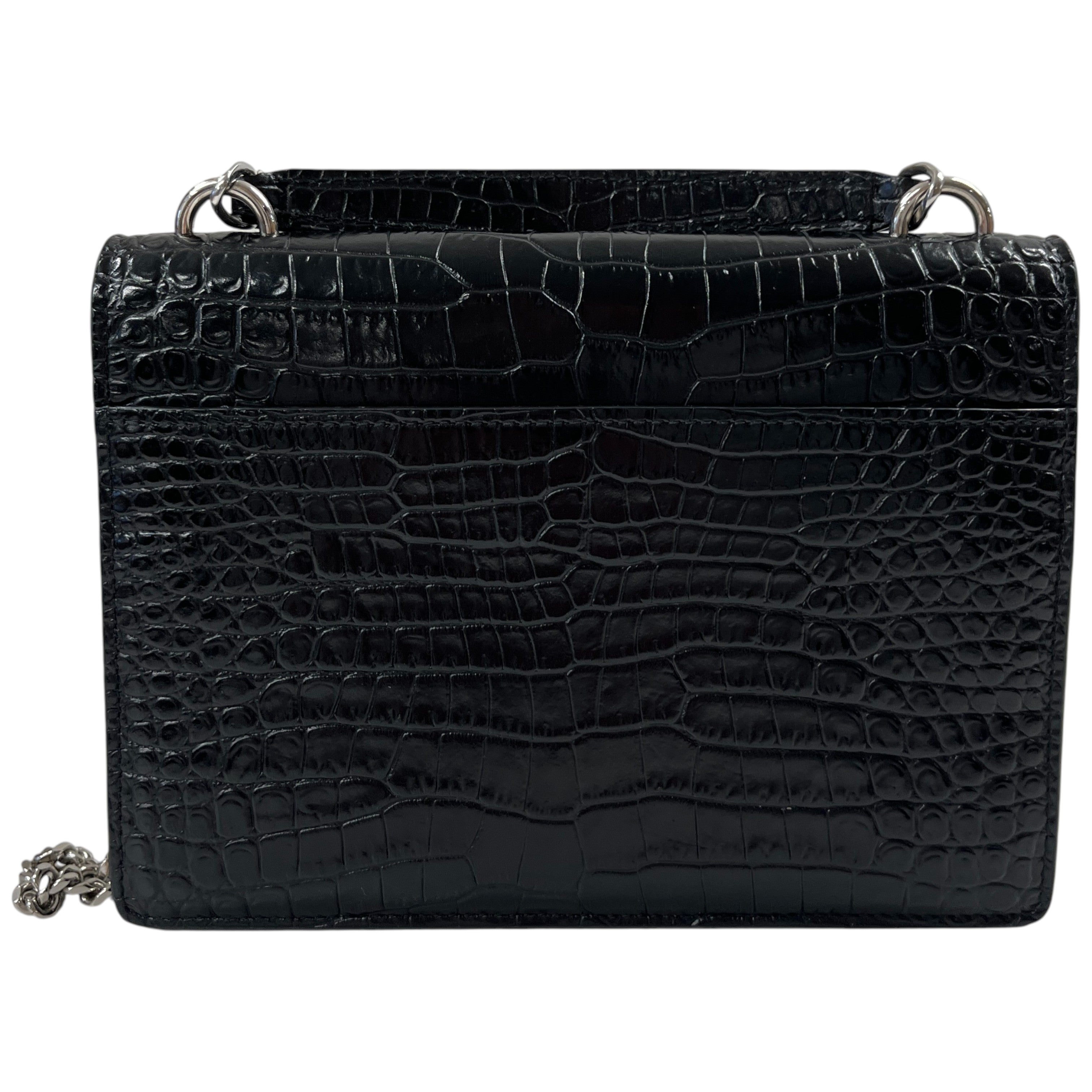 Women's Mini Sunset Croc Embossed Top Handle Bag Black