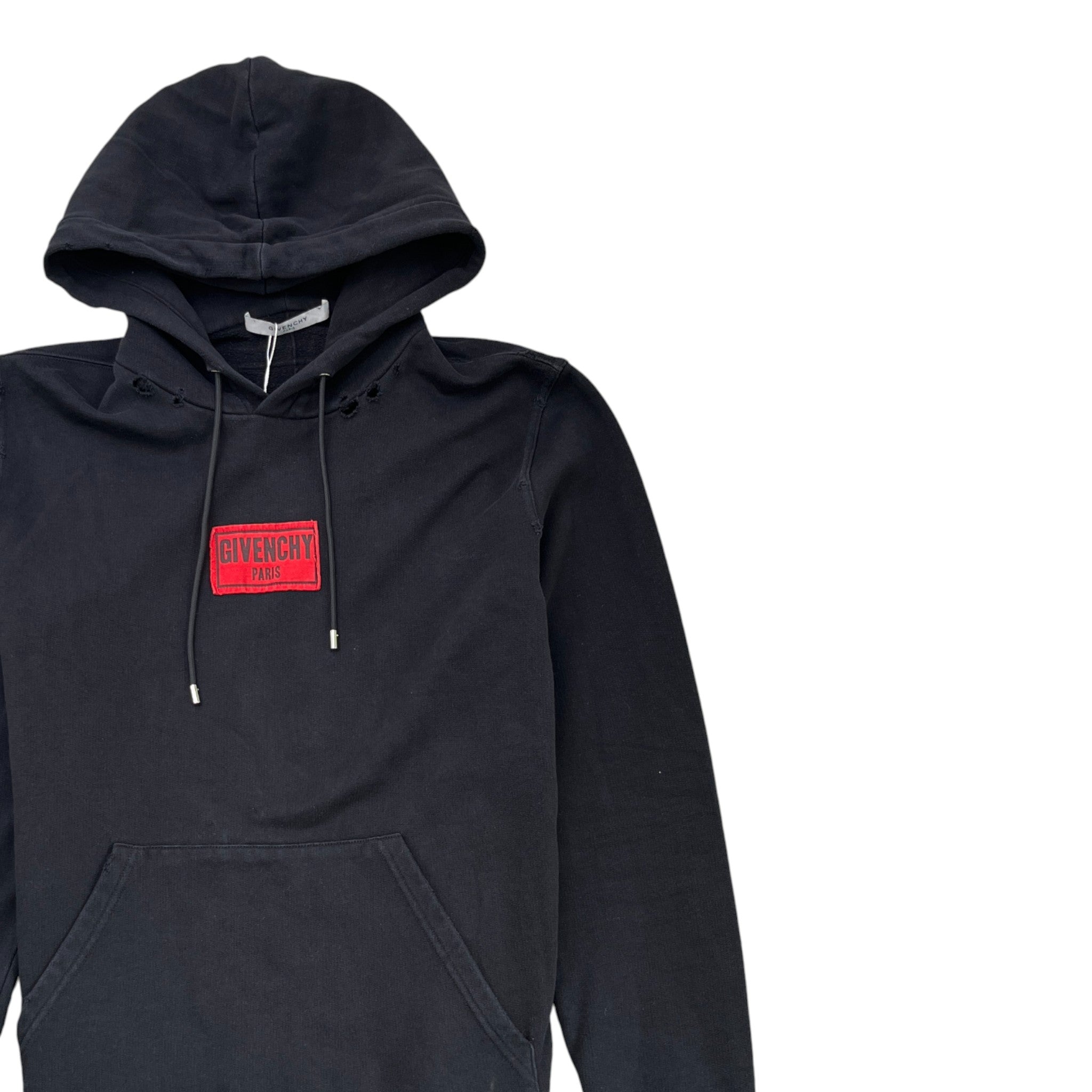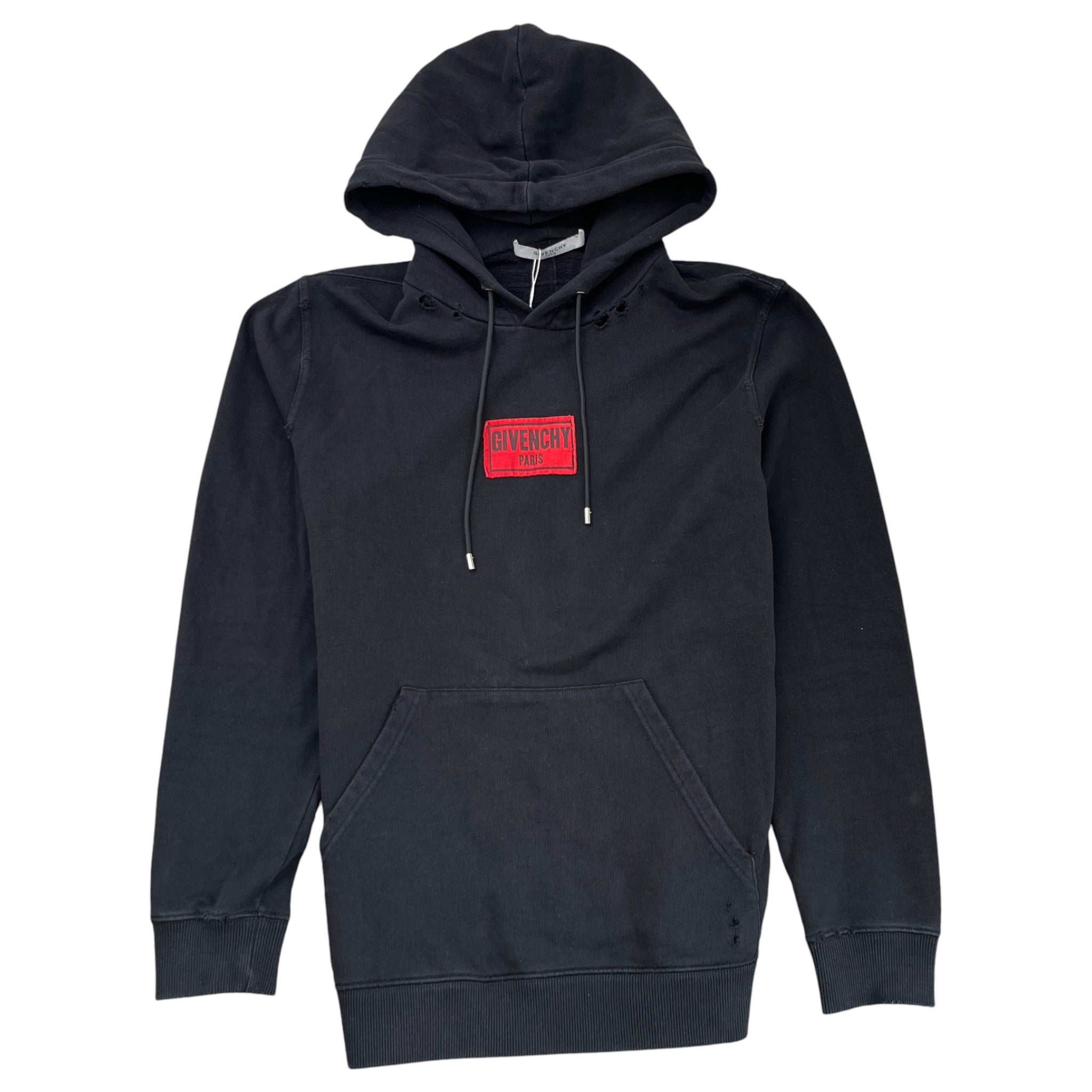 Men's Distressed Logo Patch Hoodie Black Size M