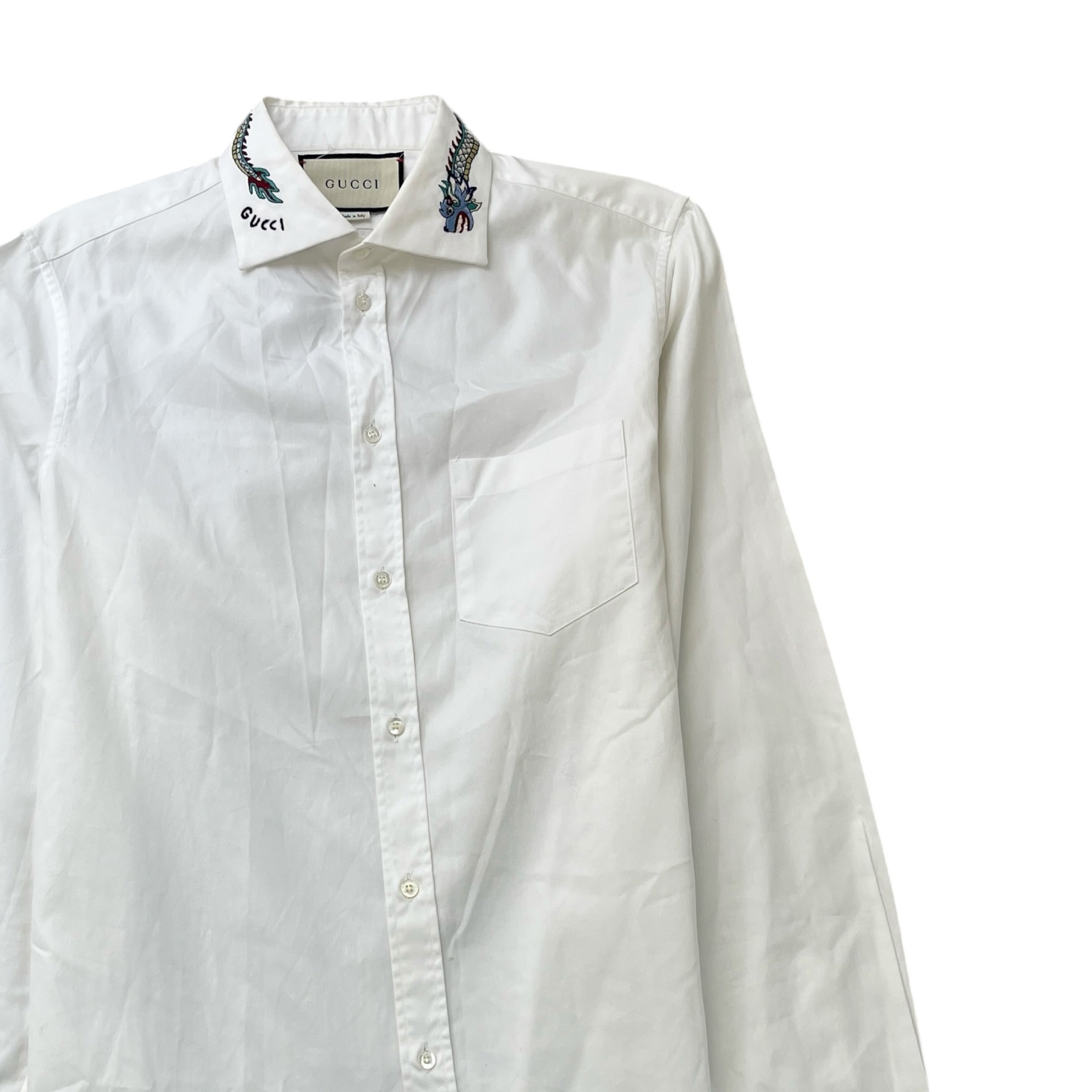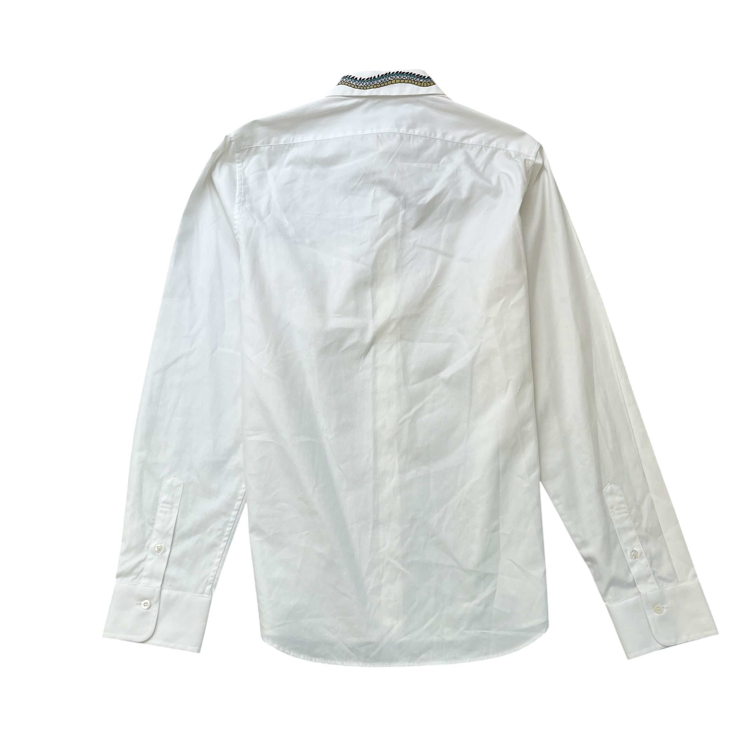 Men's Embroidered Collar Long Sleeve Shirt White Size L