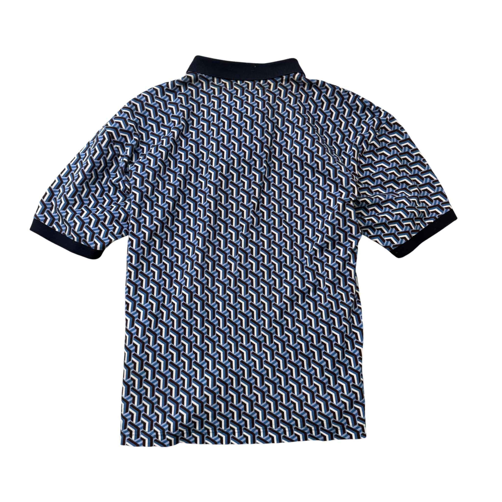 Men's Geometric Patterned Polo Shirt Blue Size XL