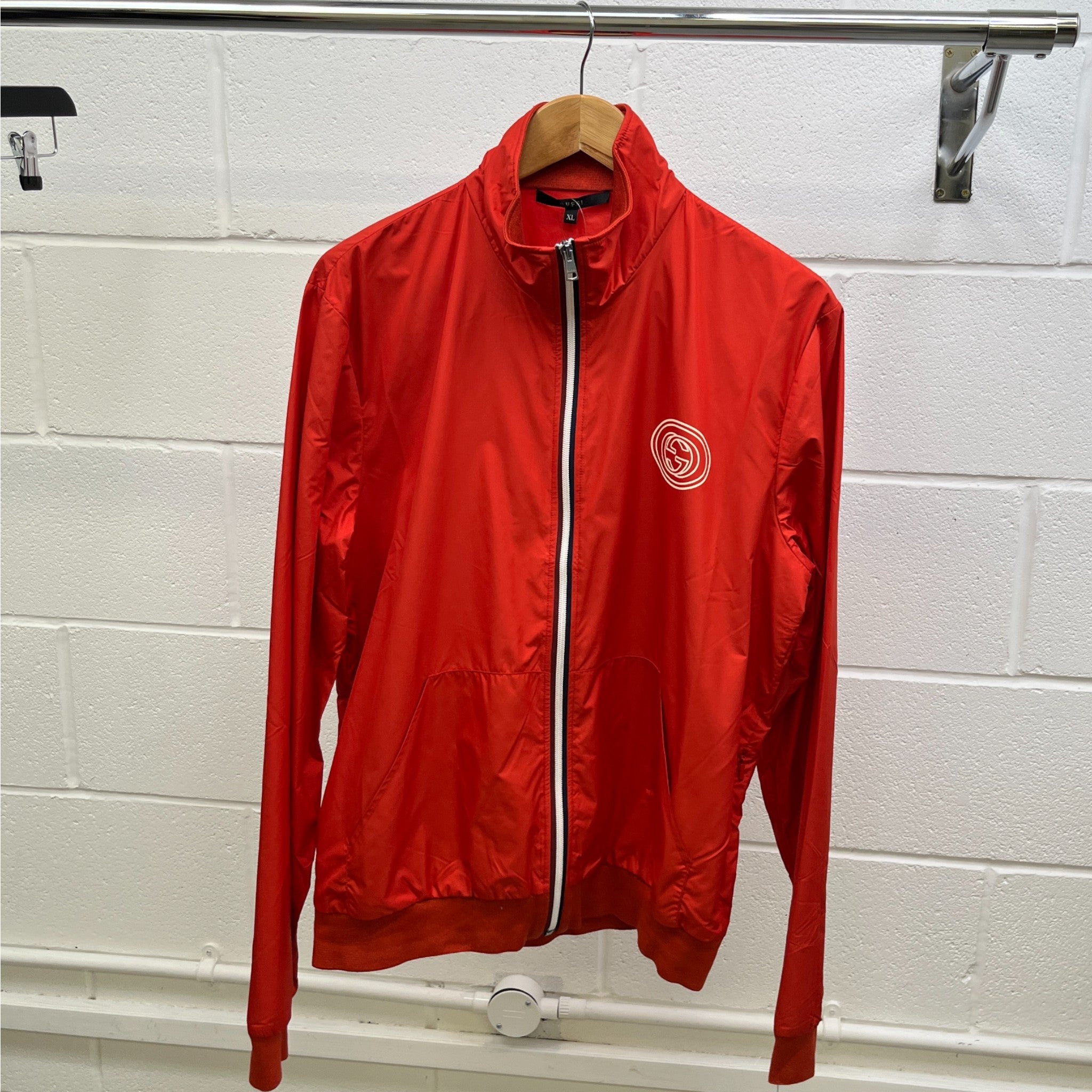 Men's Gg Logo Print Windbreaker Red Size XL