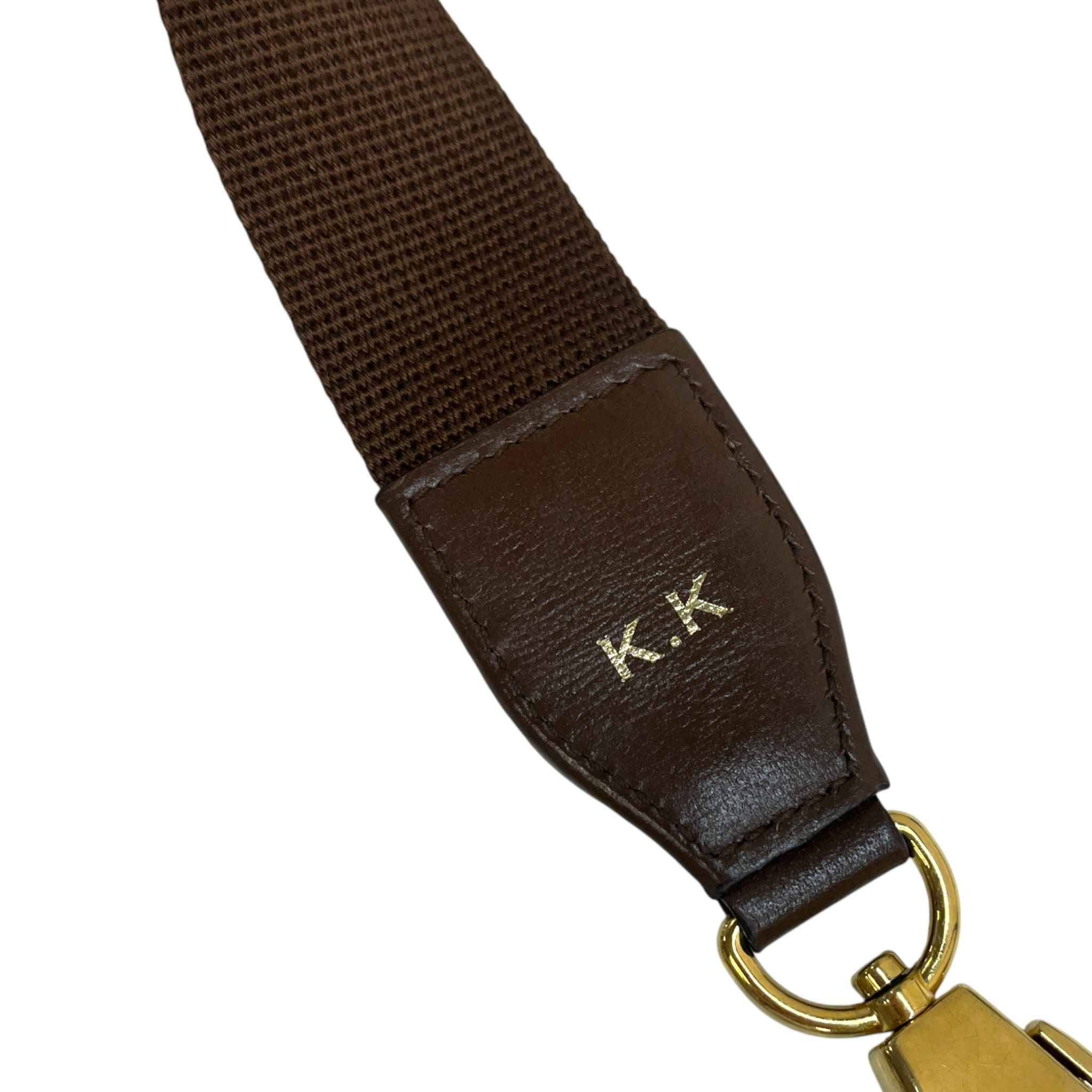 Initials K.K hot stamped onto strap, however this can be professionally removed.