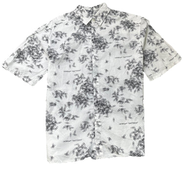Men's Paperclip Print Short Sleeve Shirt White Size M