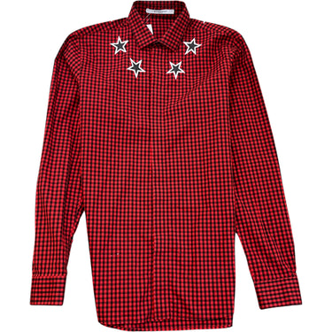 Men's Star-Print Gingham Long Sleeve Shirt Red Size S