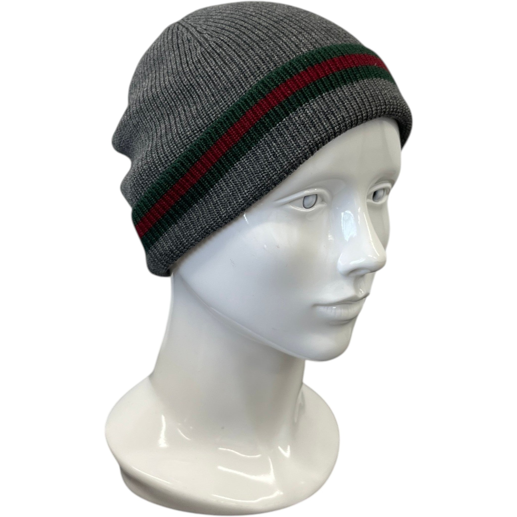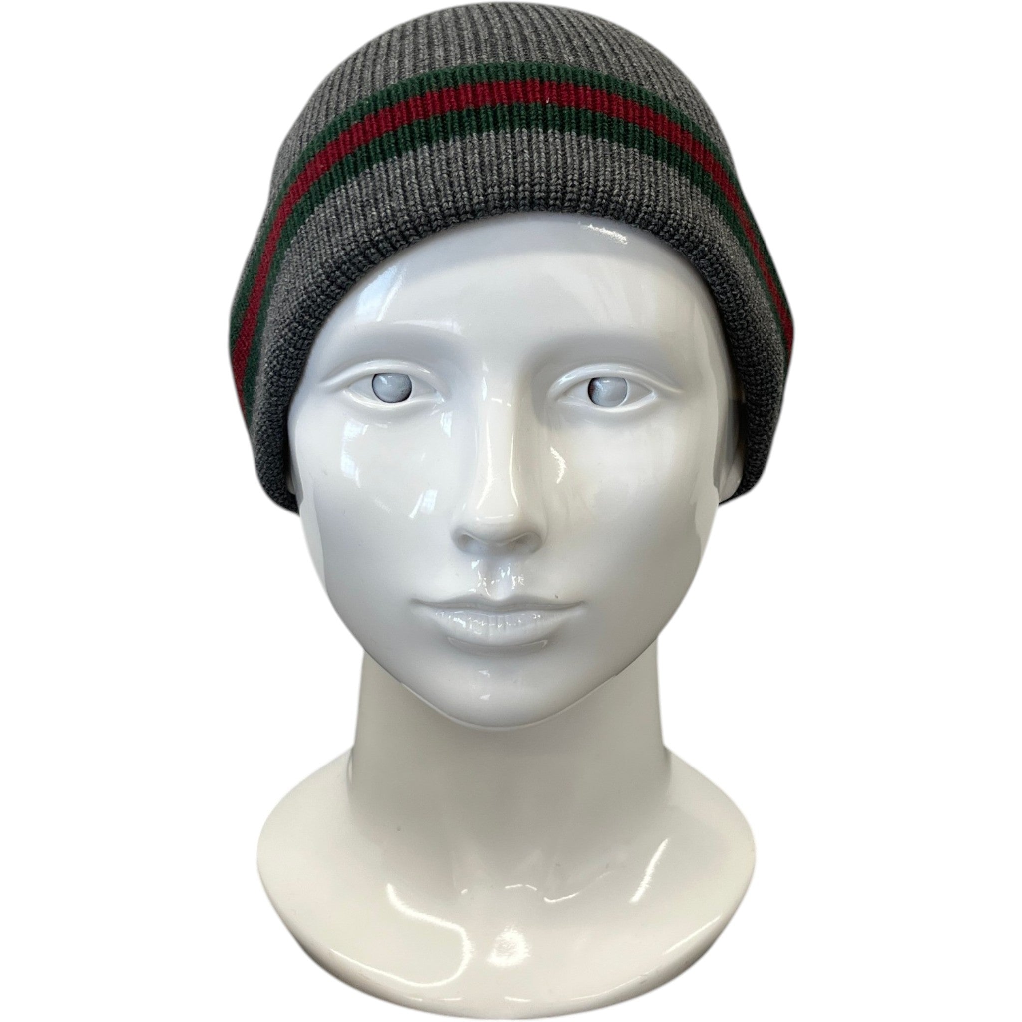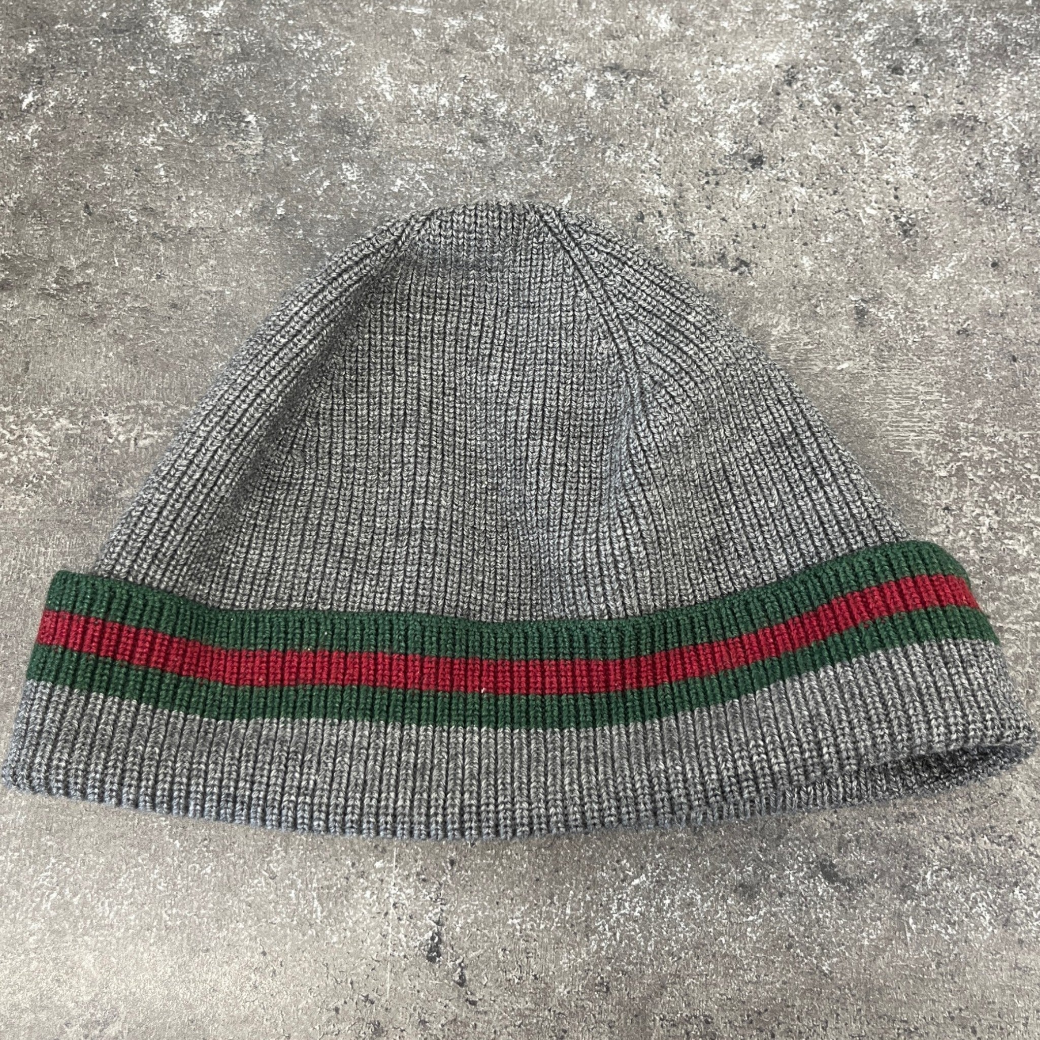 Men's Web Stripe Beanie Hat Grey