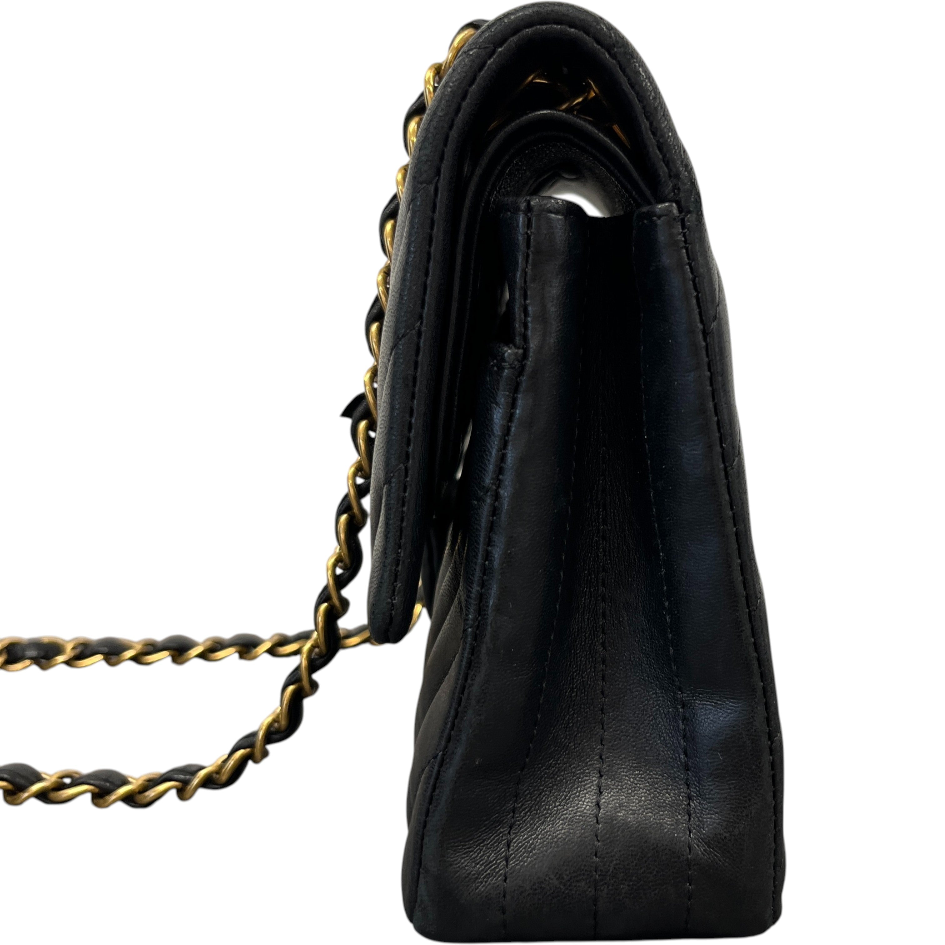 Women's Chevron Classic Flap Medium Lambskin Handbag Black