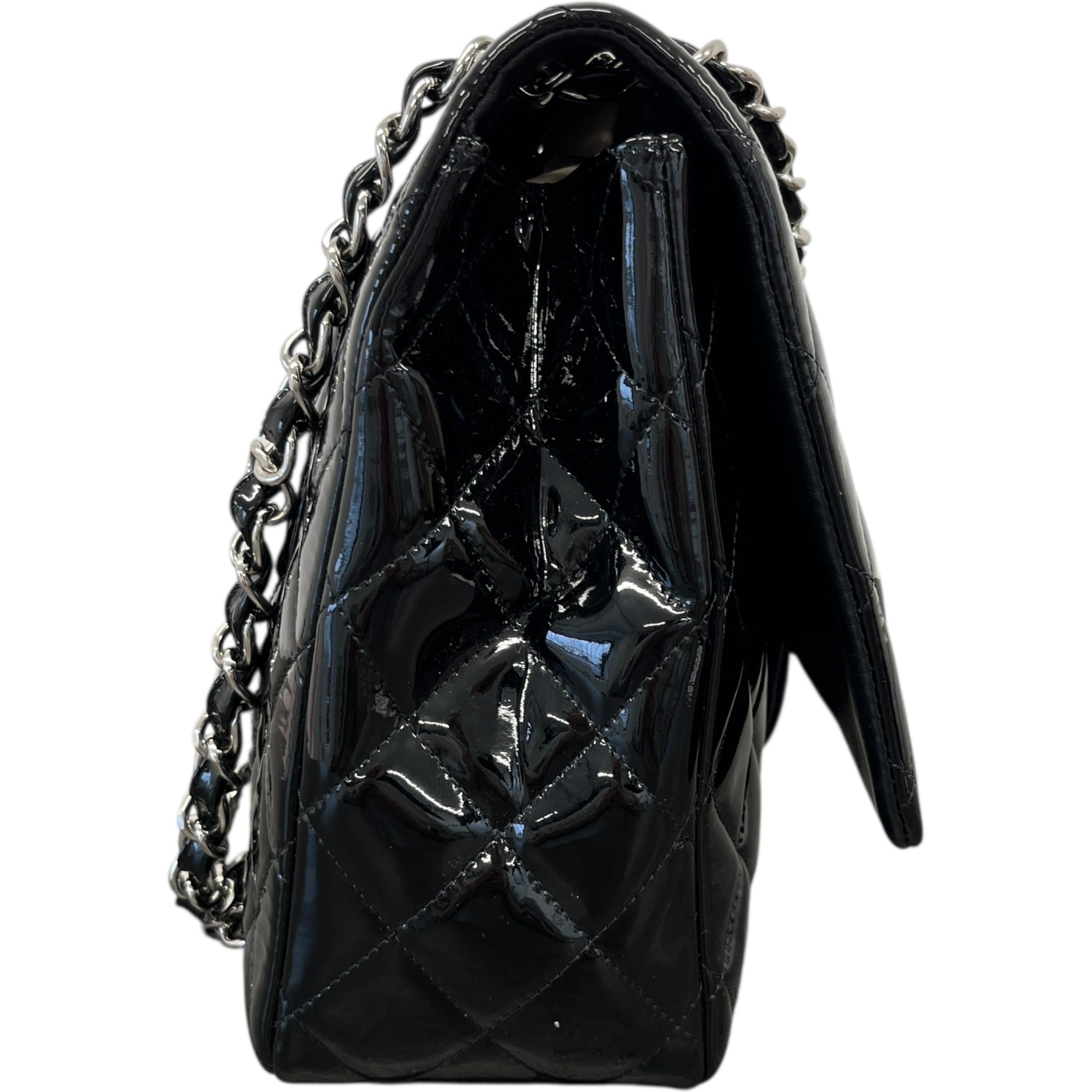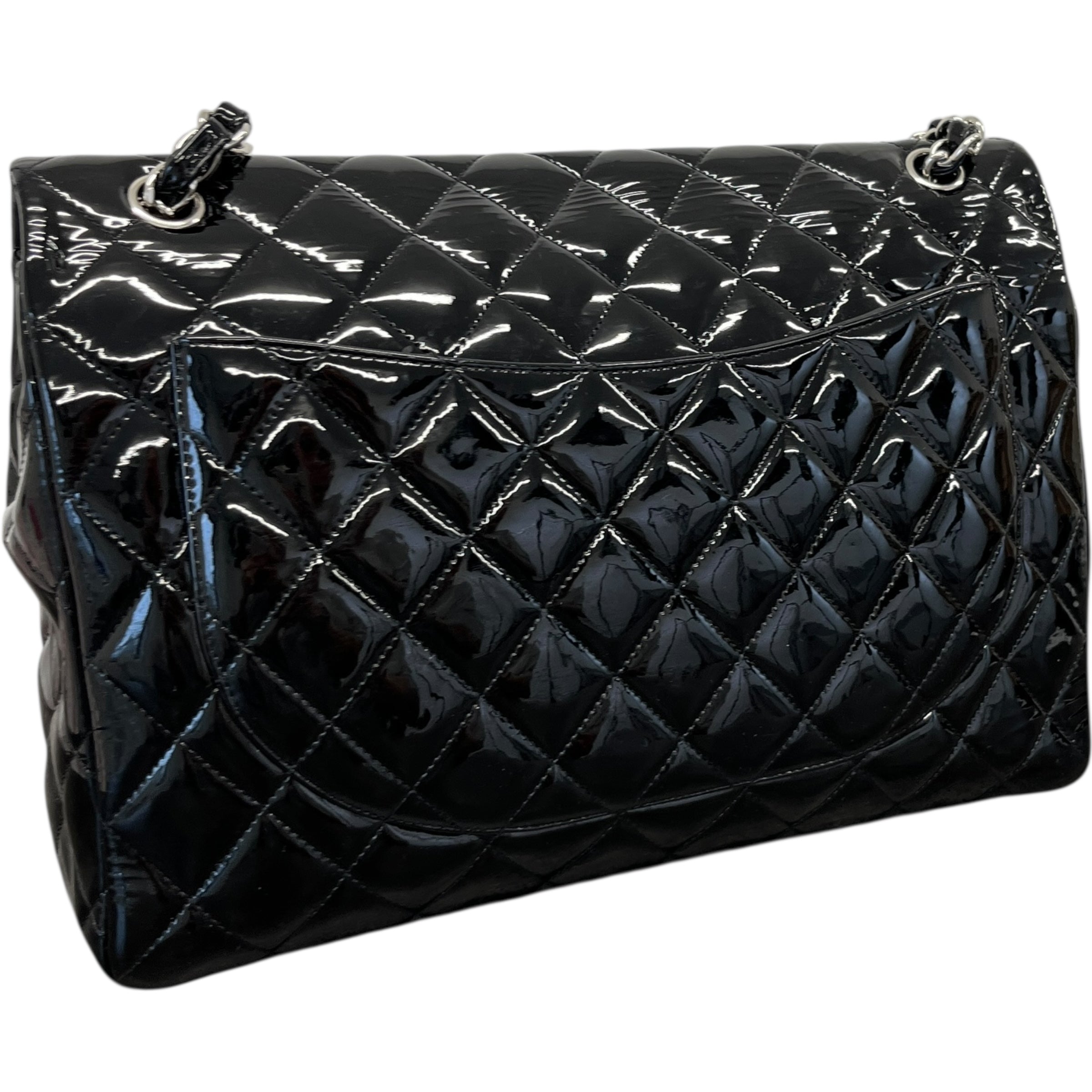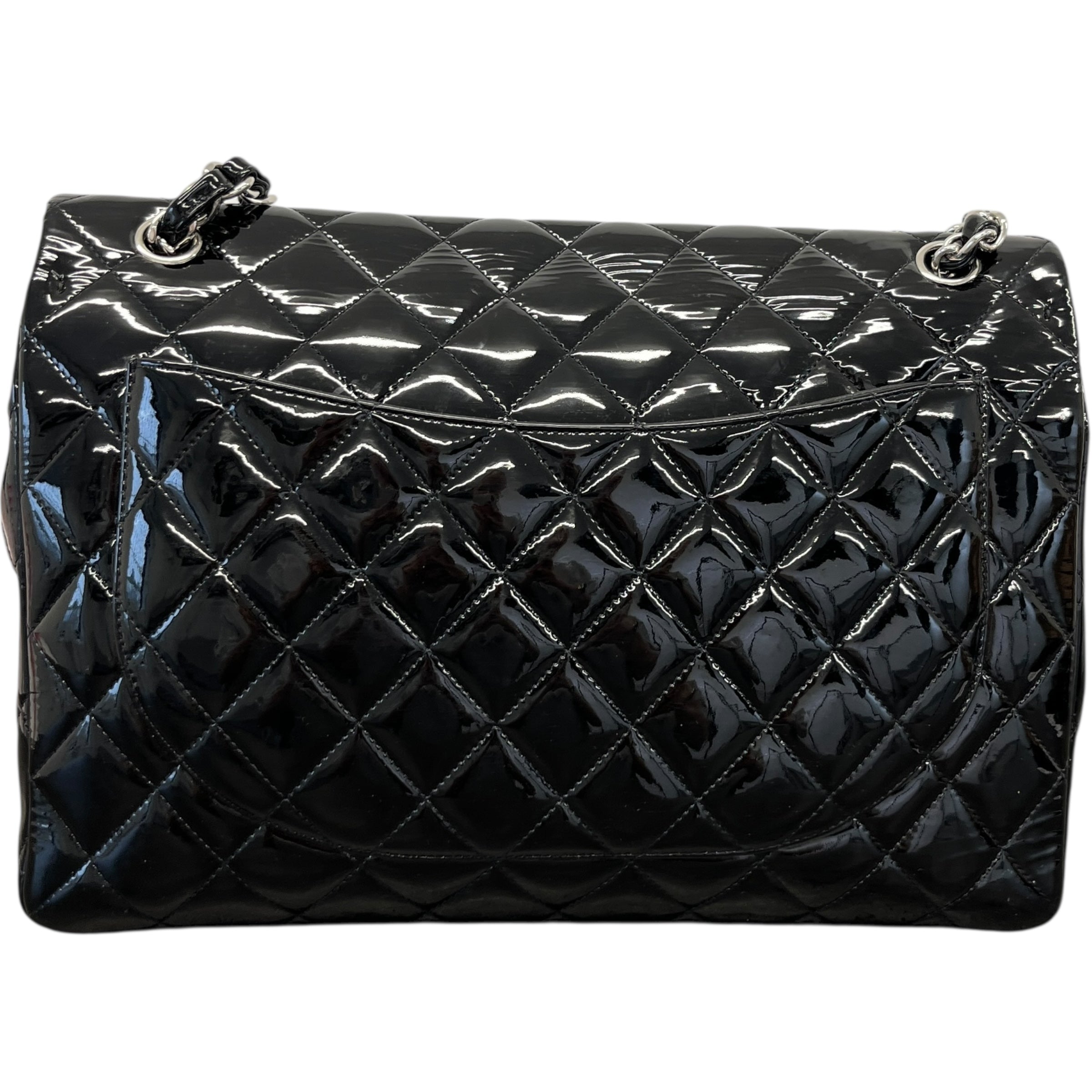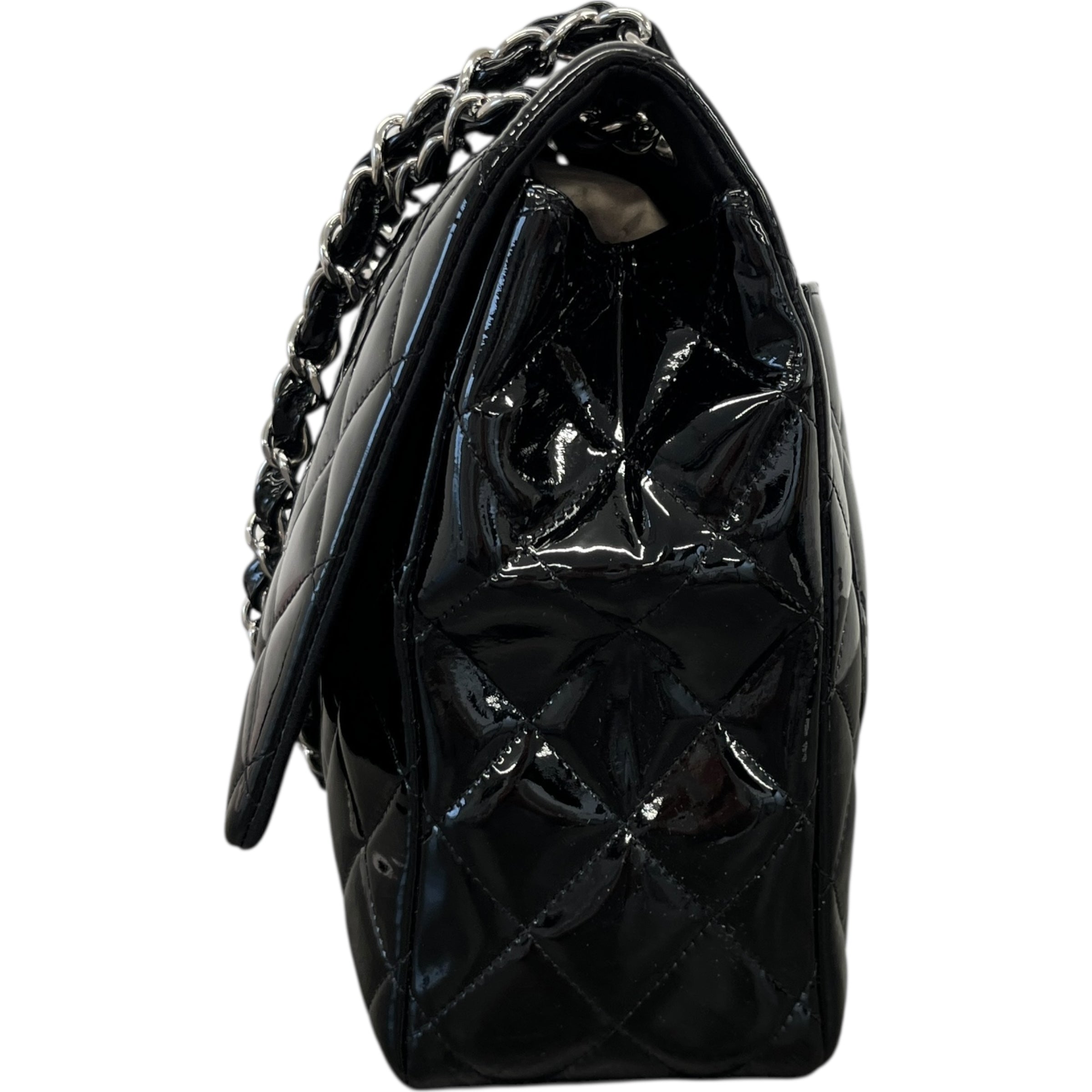 Women's Jumbo Patent Classic Flap Bag Black