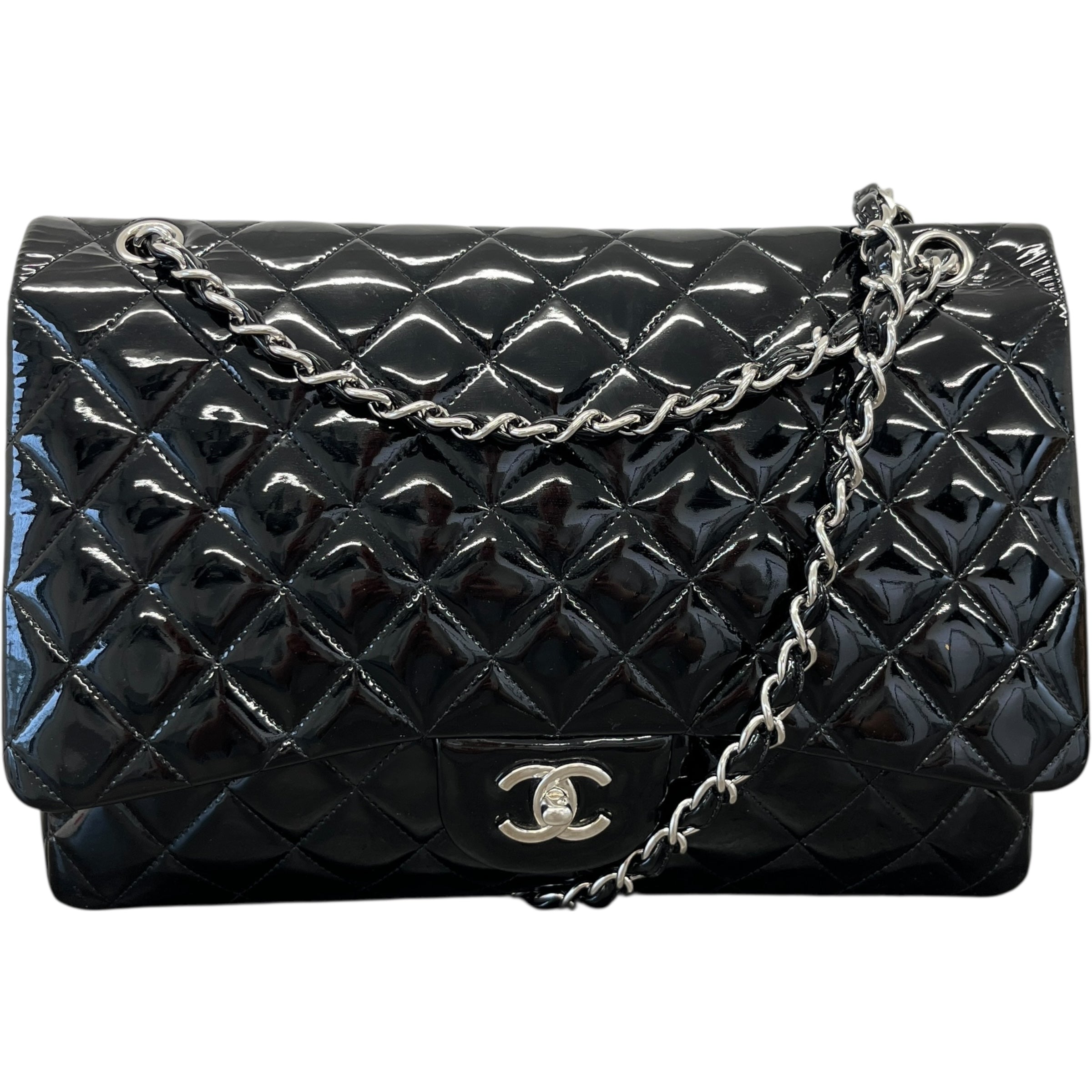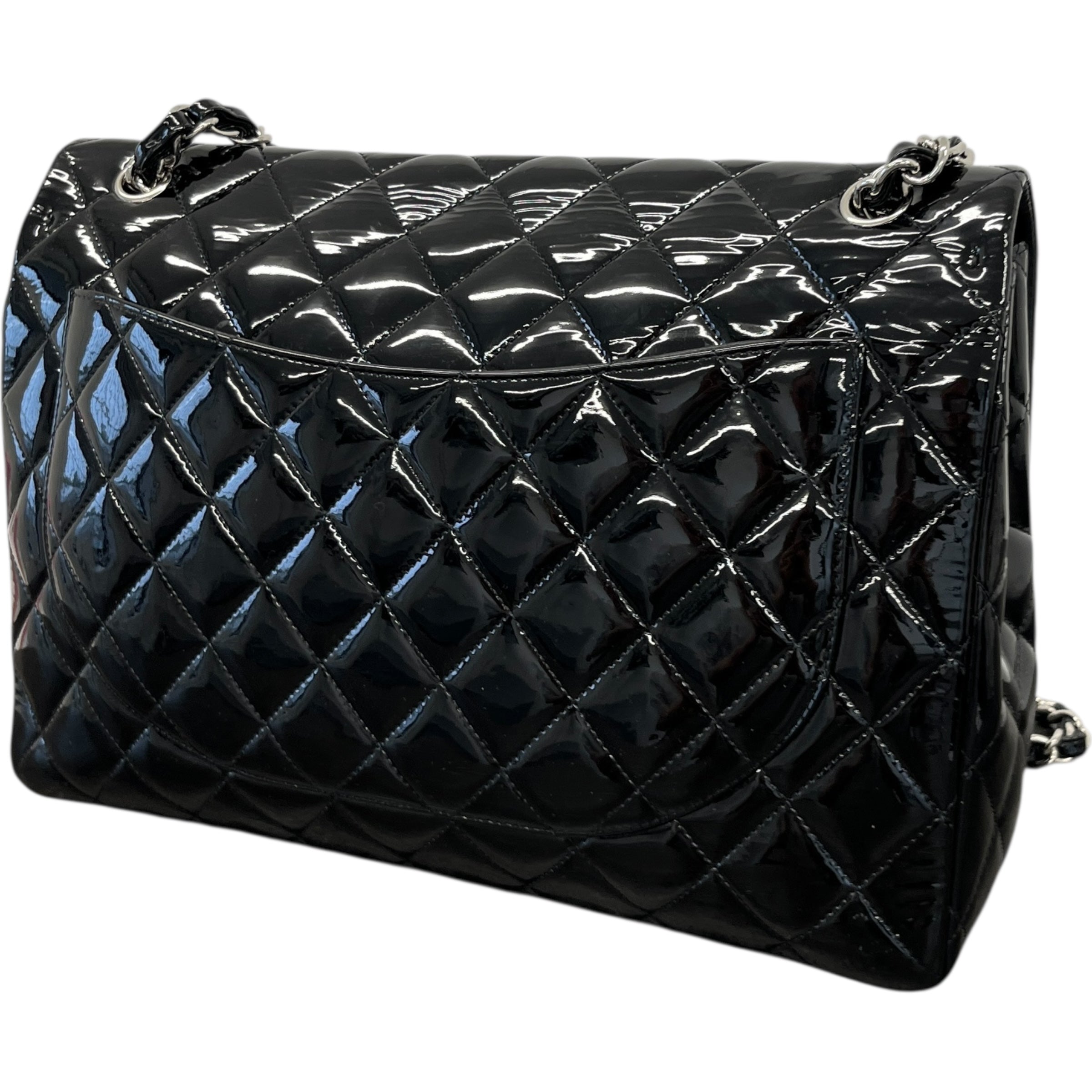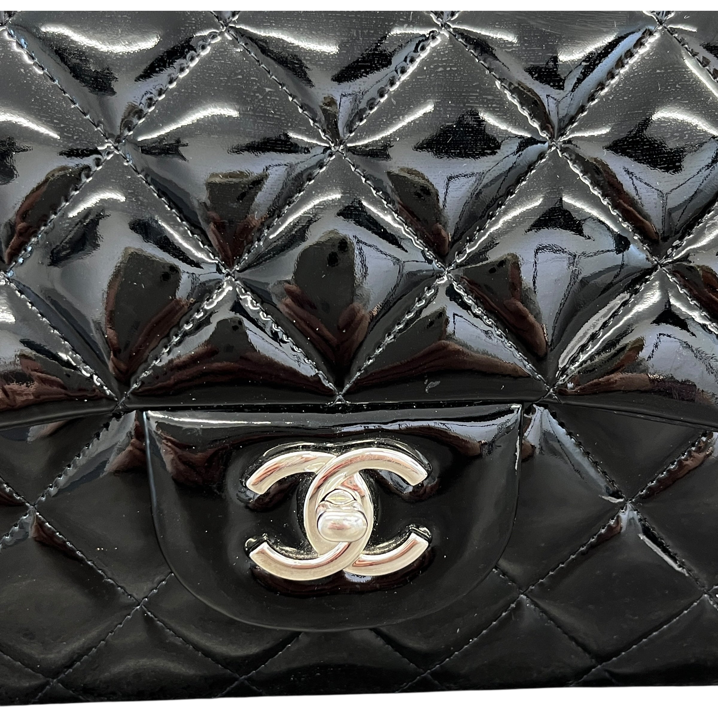 Women's Jumbo Patent Classic Flap Bag Black