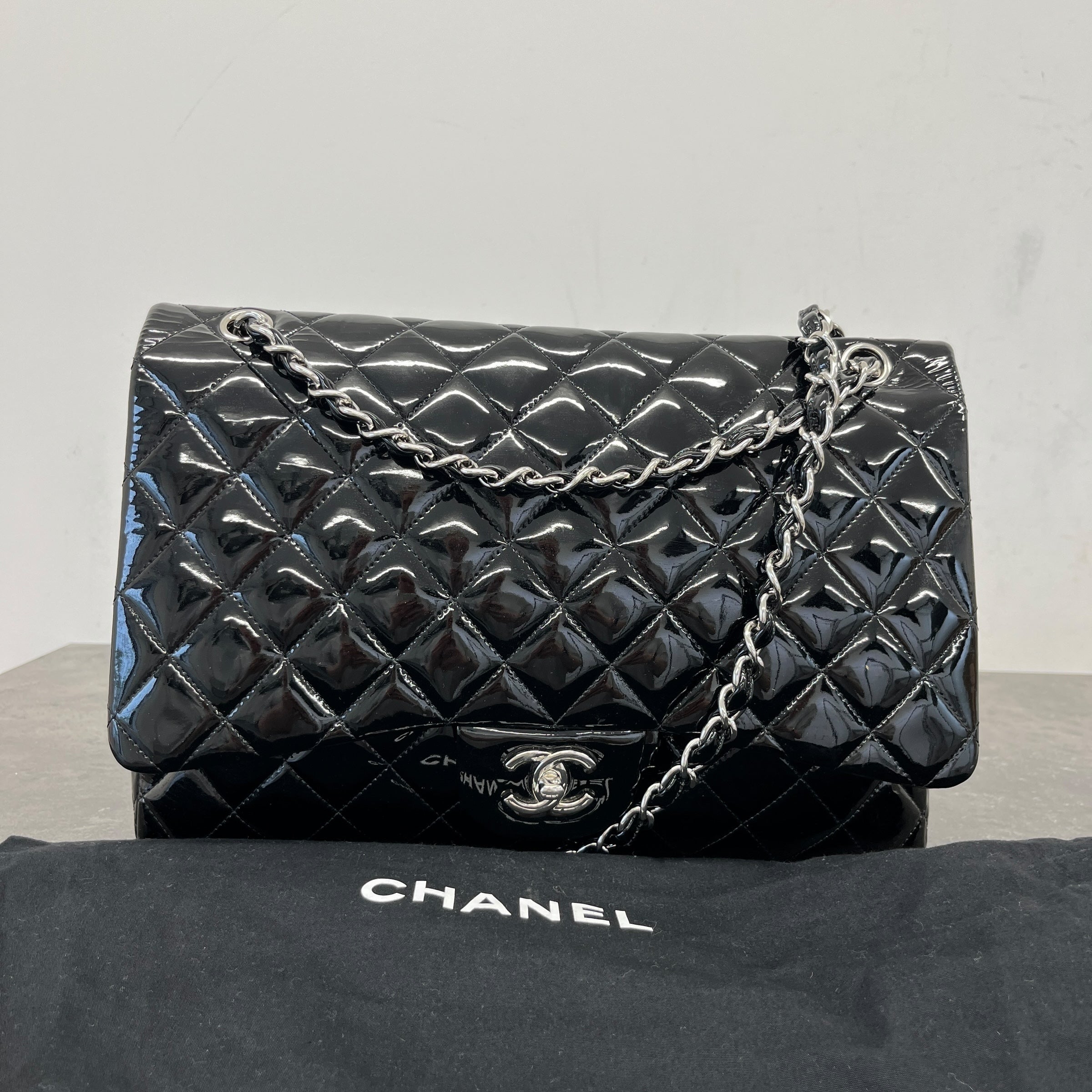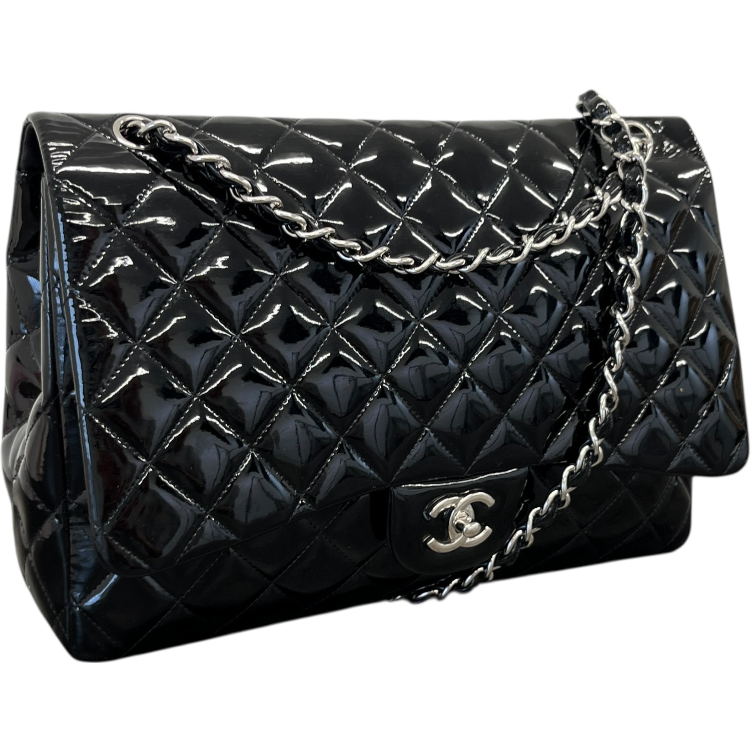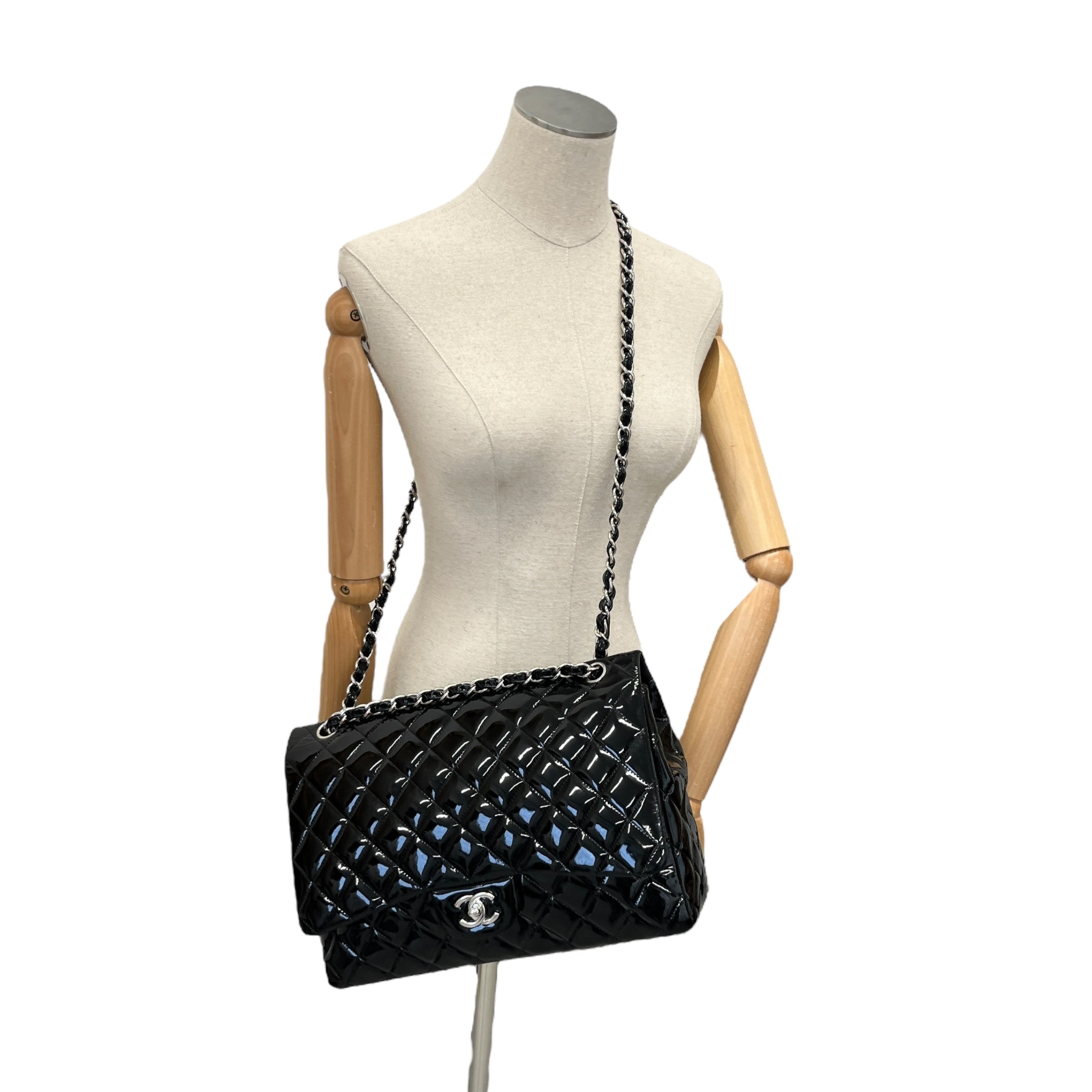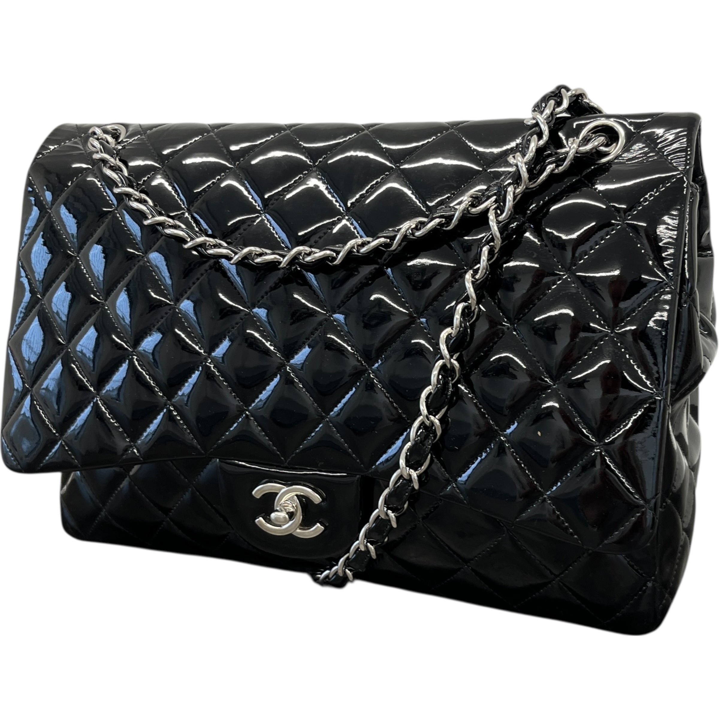 Women's Jumbo Patent Classic Flap Bag Black
