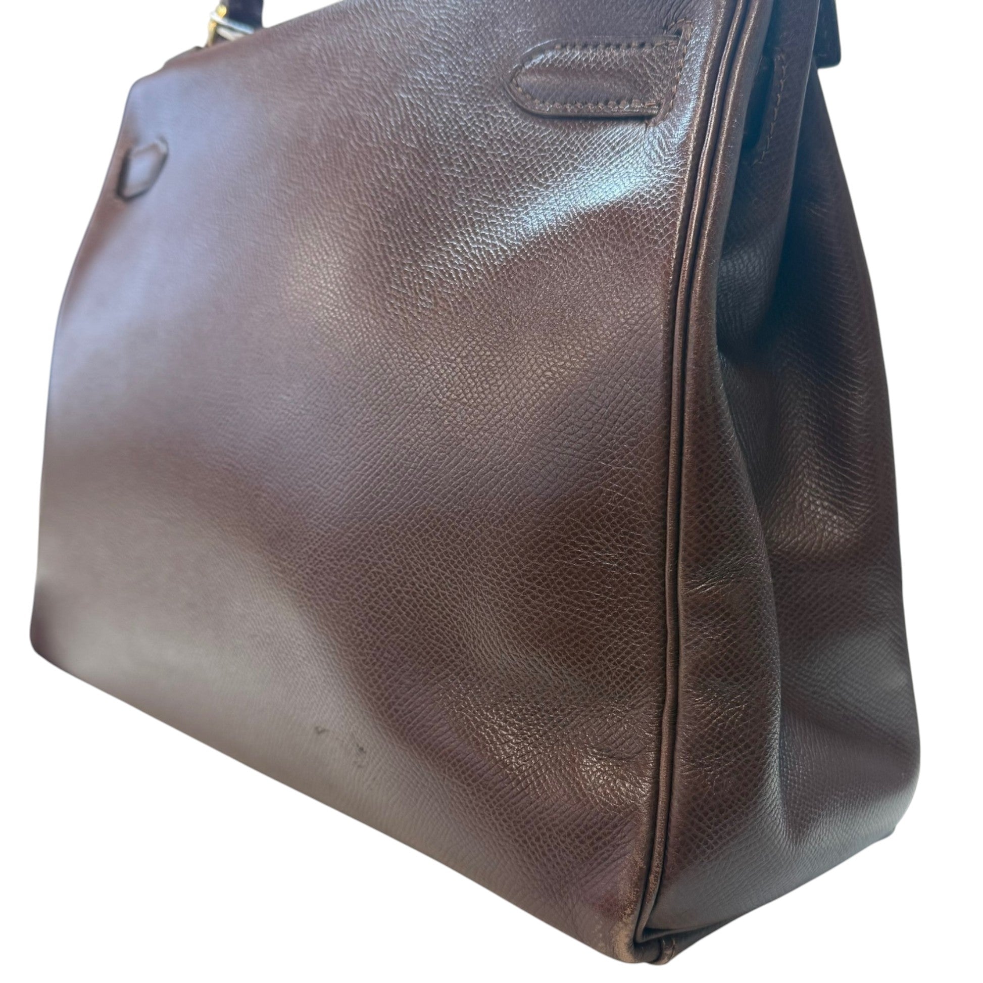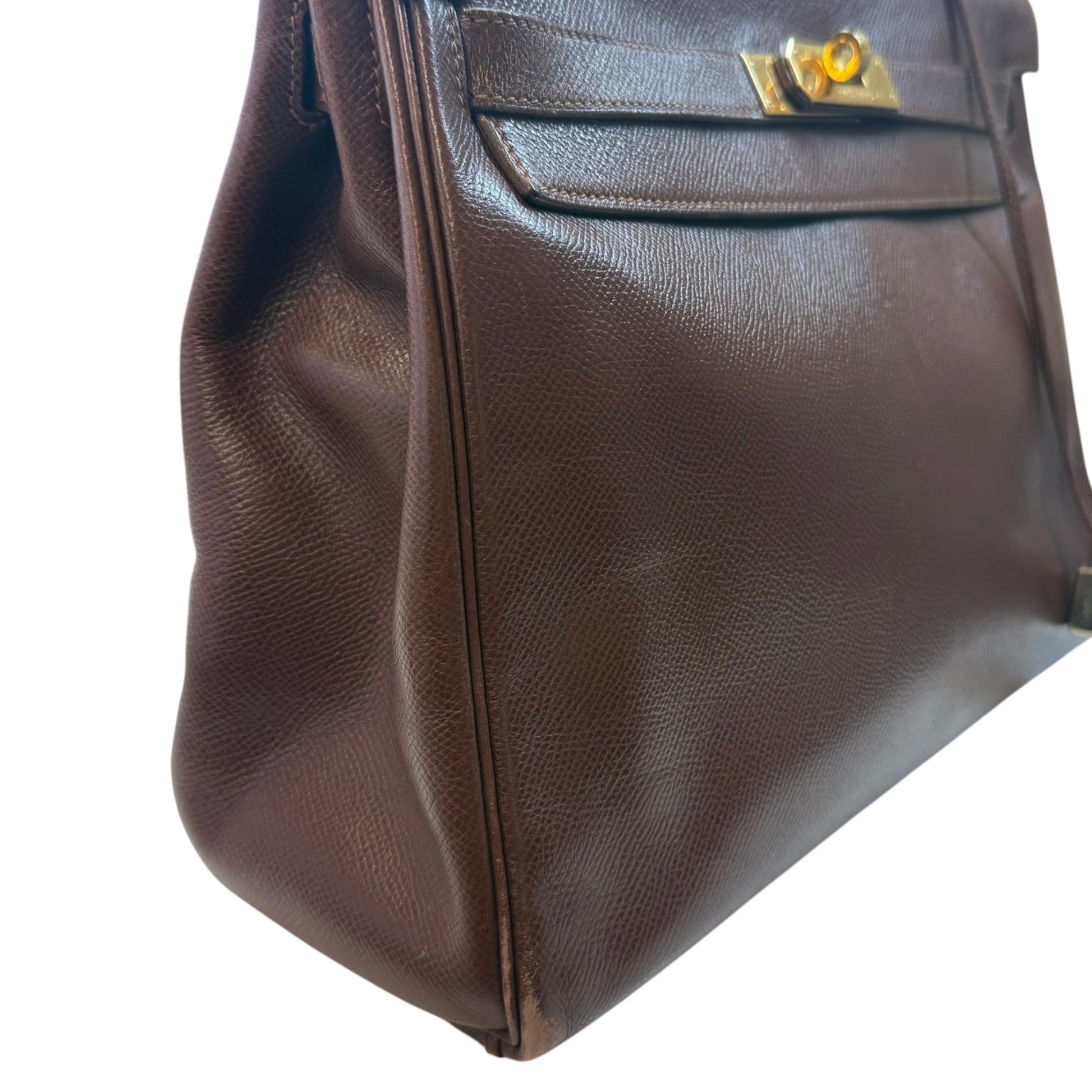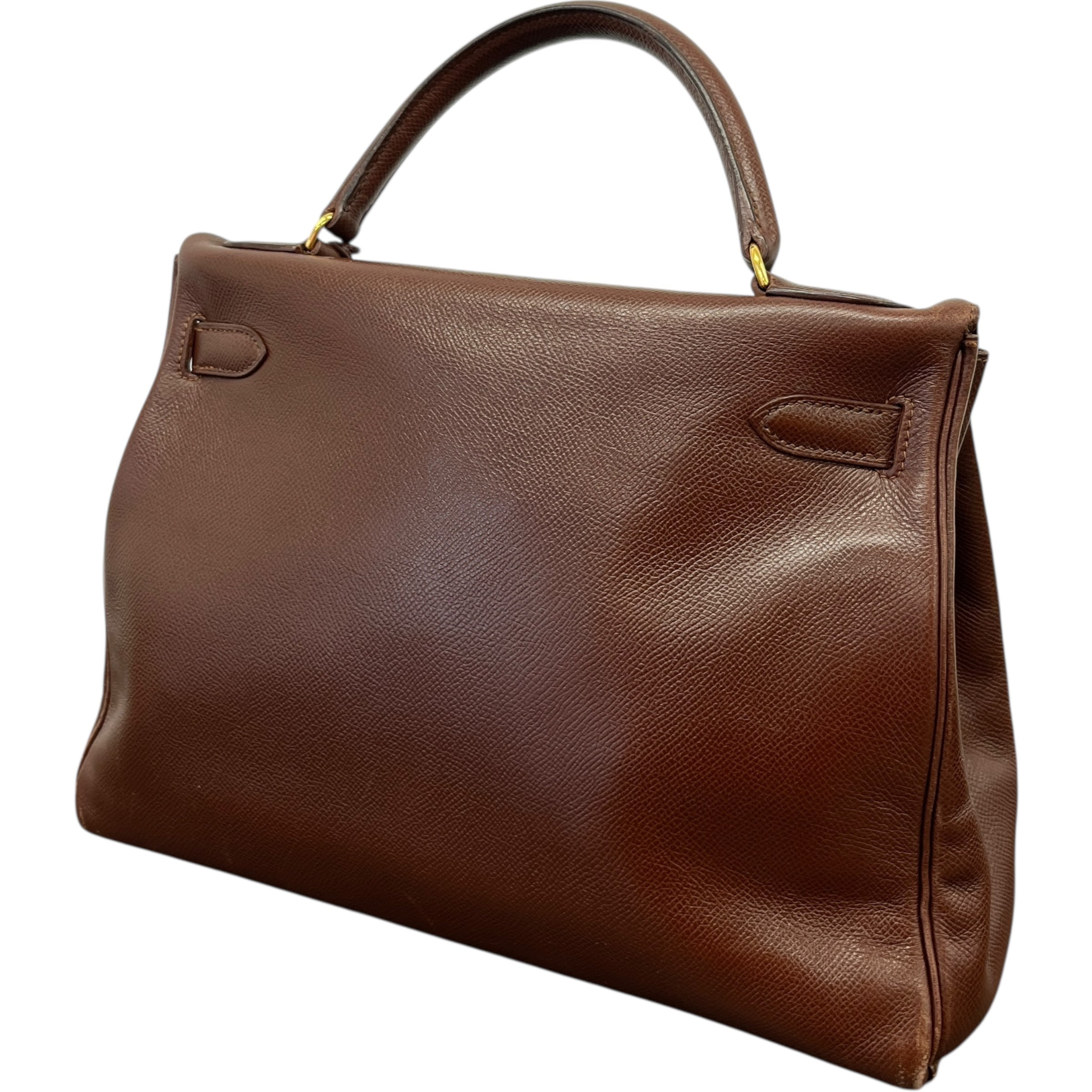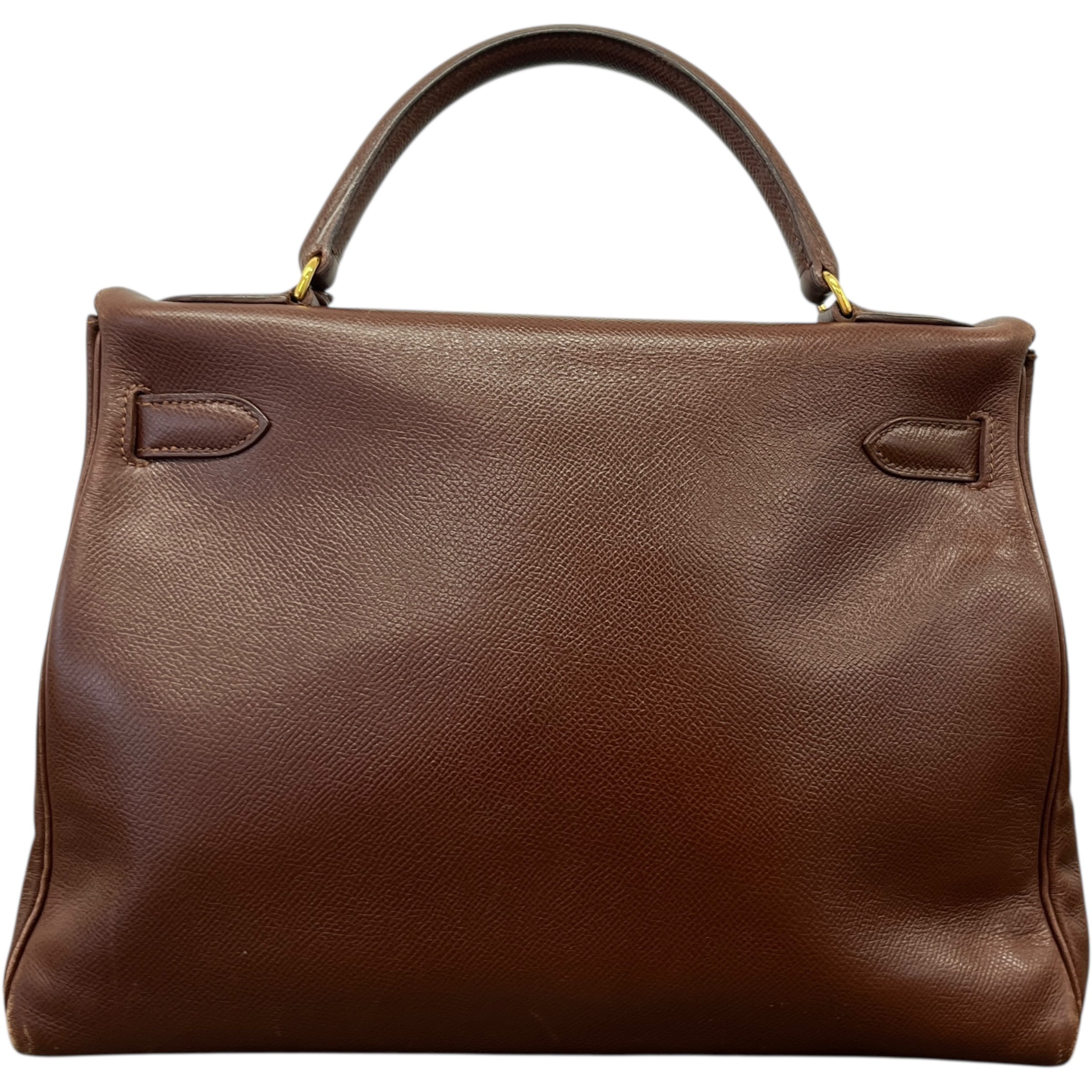 Comments This exquisite Kelly 32 is crafted from premium Courchevel leather in a rich brown hue, complemented by elegant gold hardware. A timeless vintage piece. Year: 1991 (Stamp U in Circle) Includes: Padlock, keys The bag remains in excellent vintage condition, showing only light surface level wear to the bottom corners consistent with gentle use, as detailed in the photos. The interior lining is pristine, reflecting careful ownership over the years.
