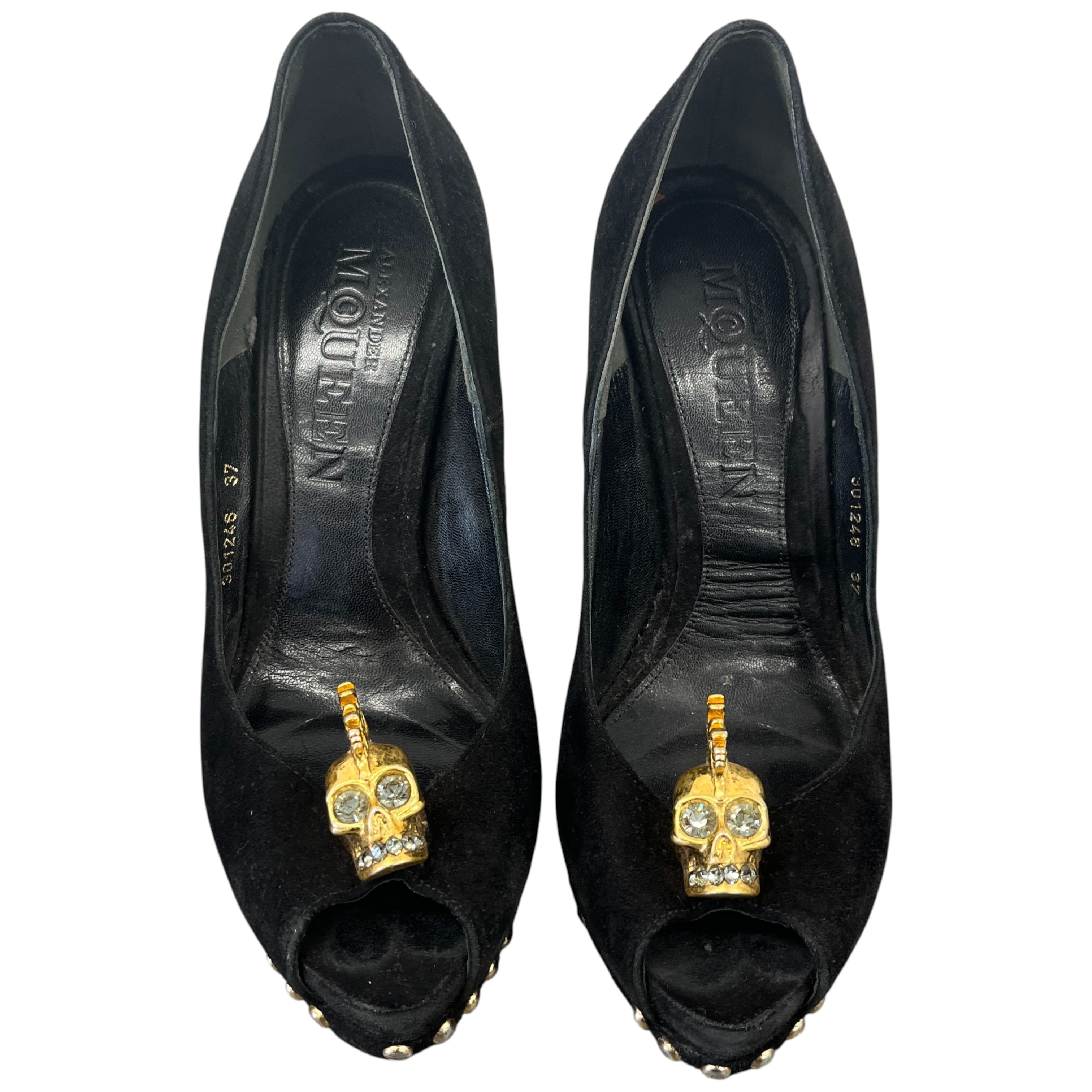 Women's Skull Peep Toe Heels Black Size EU 37 / UK 4