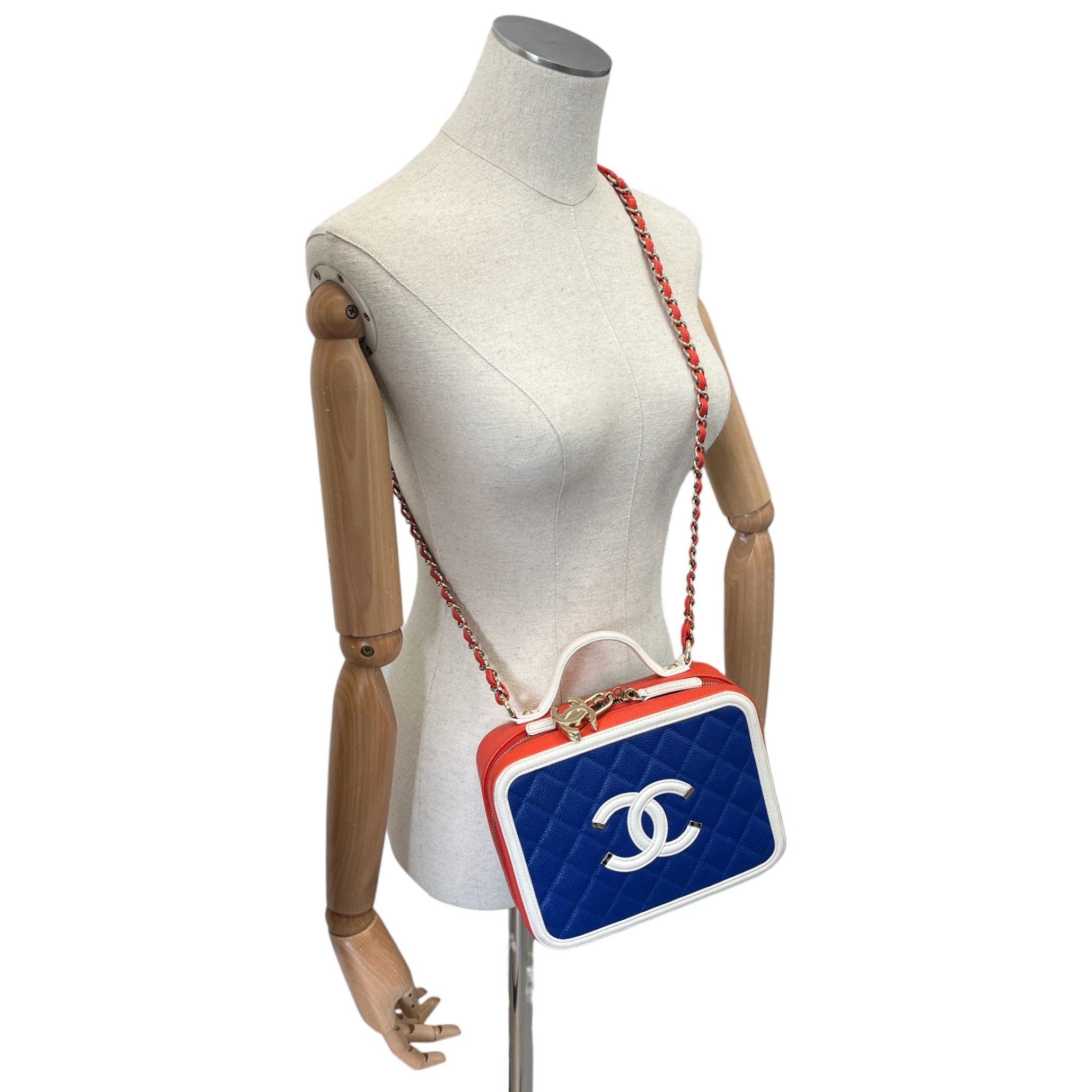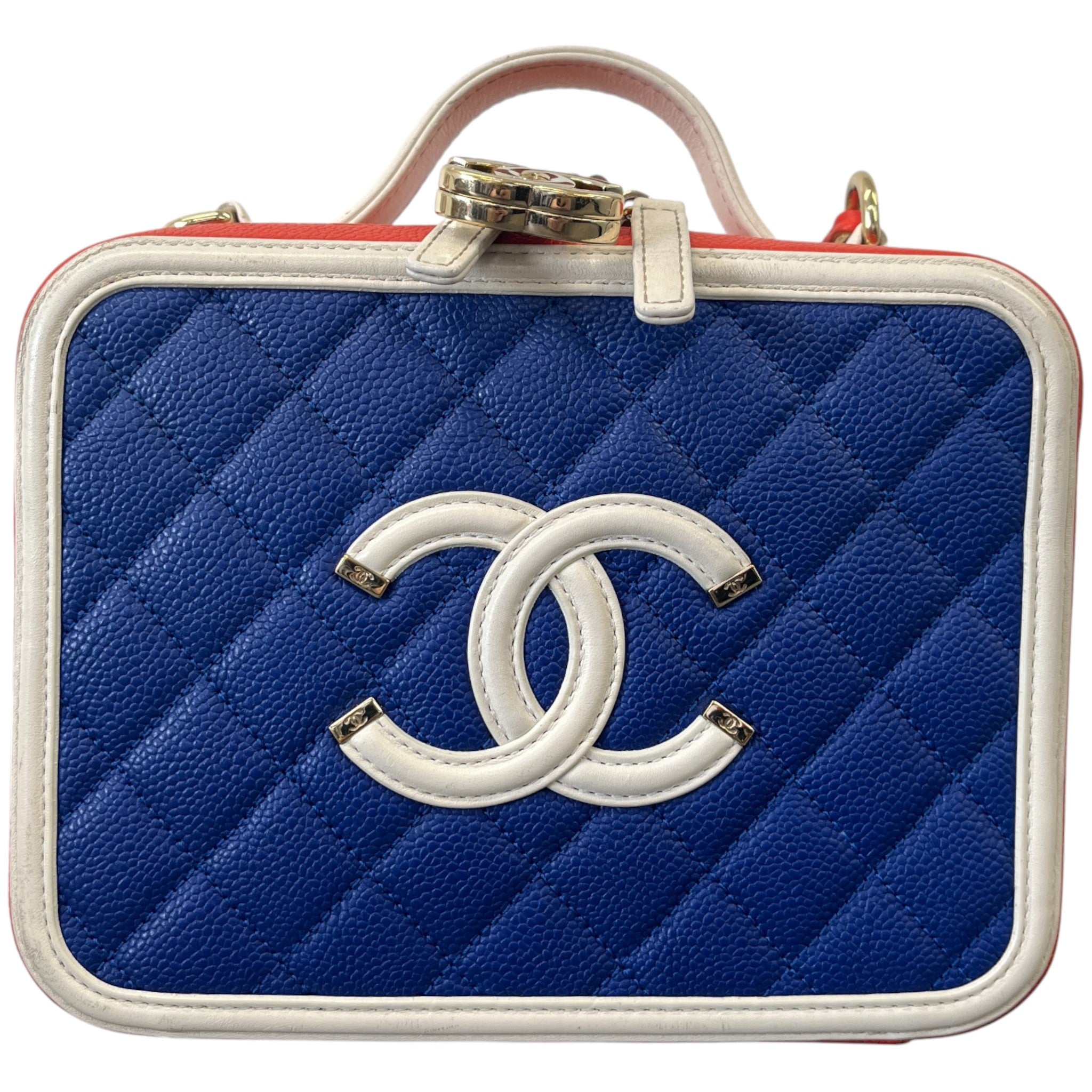 Women's Tricolor Caviar Cc Filigree Vanity Case Medium Handbag Multi-Coloured